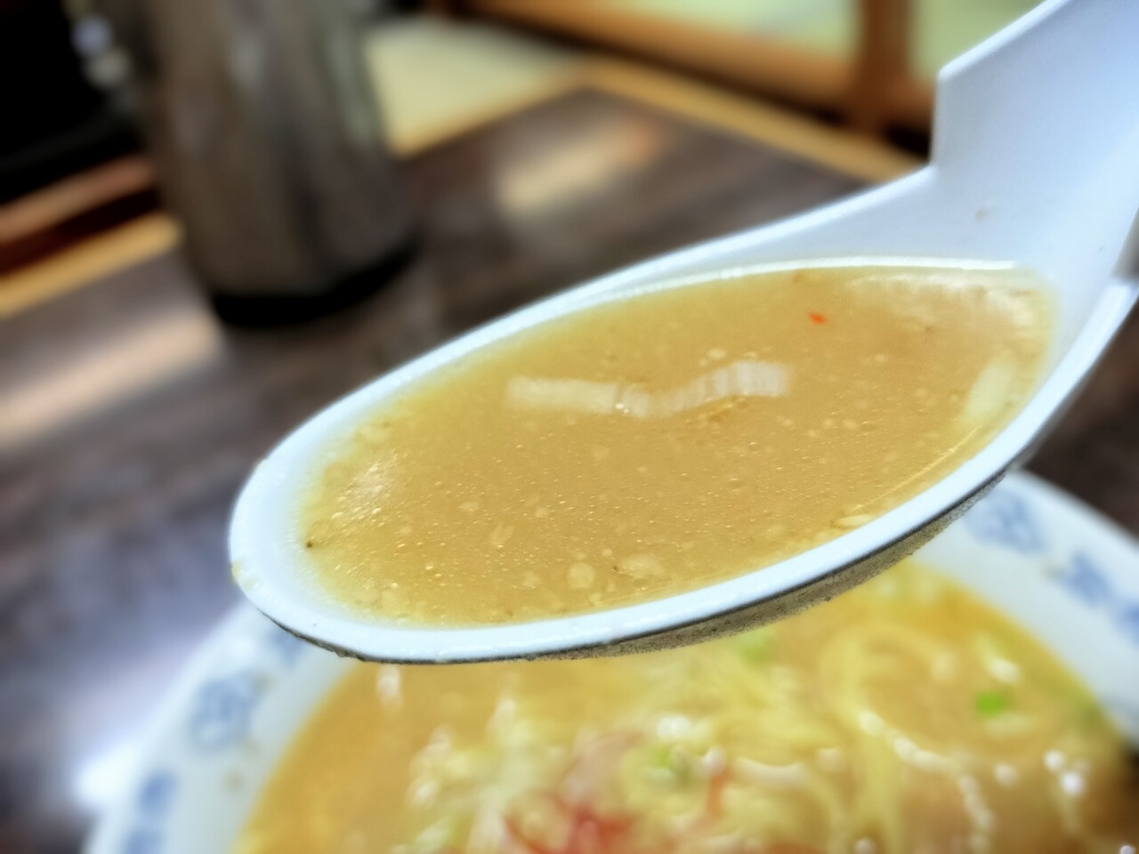 スープを頂くとコクのあるスープで案外美味しい