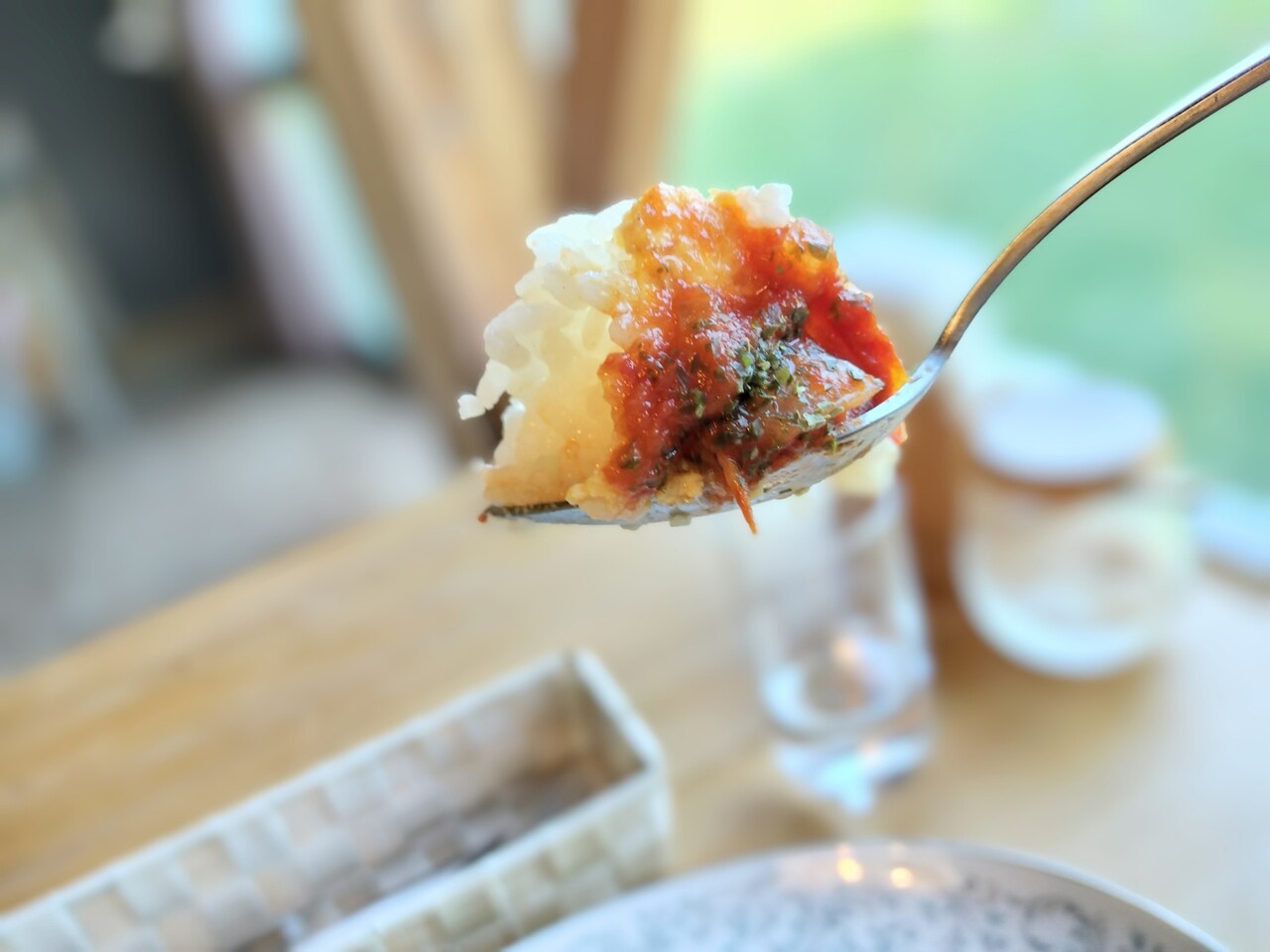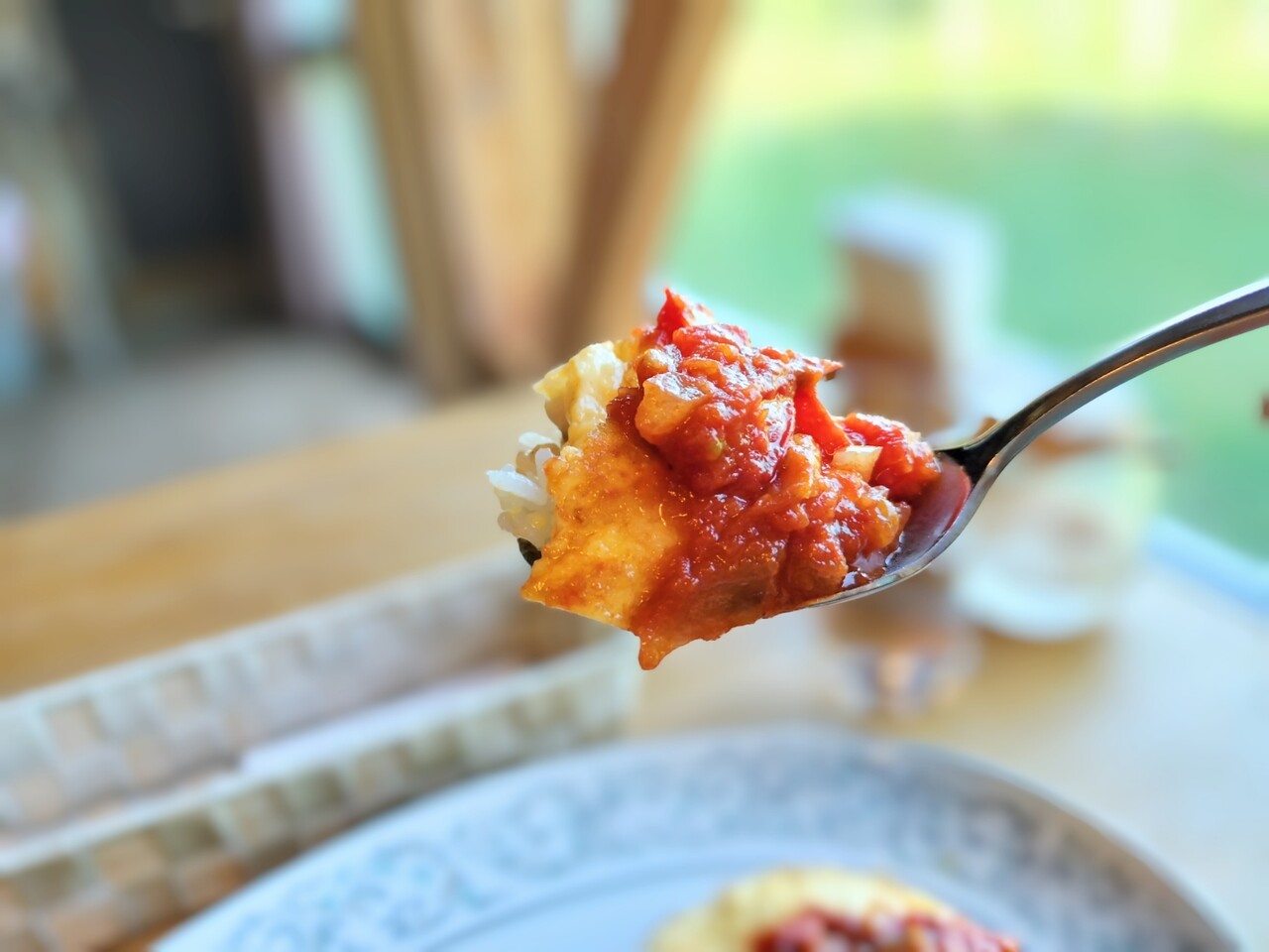 先ずはオムライスを頂くと ふわっとトロッとした卵の食感と トマトの本来の酸味と微かな甘みが良い感じで美味しいんです