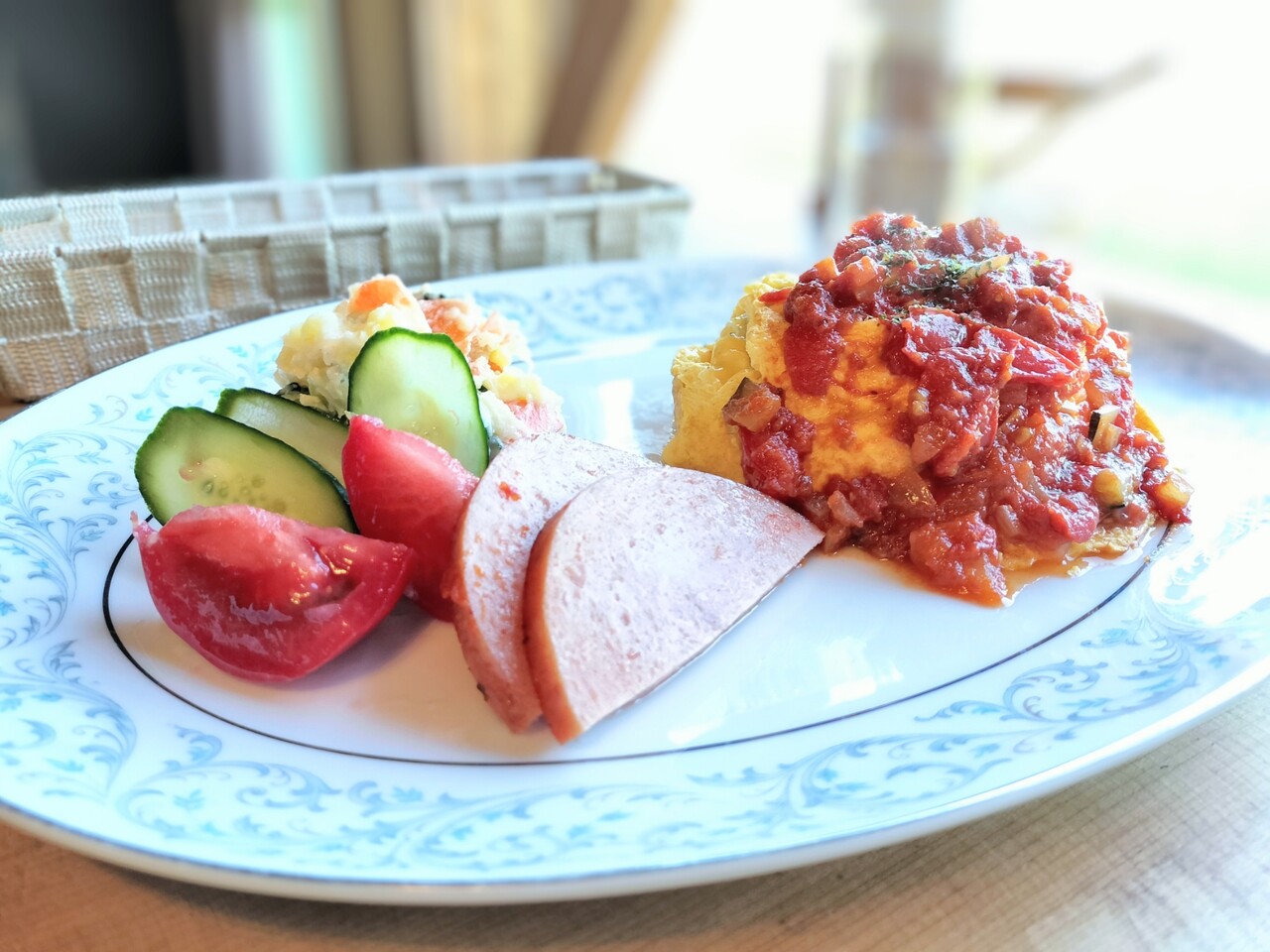 そしてポテトサラダ、野菜、ハム これがワンプレートとなっております(デザートとドリンクは後から)