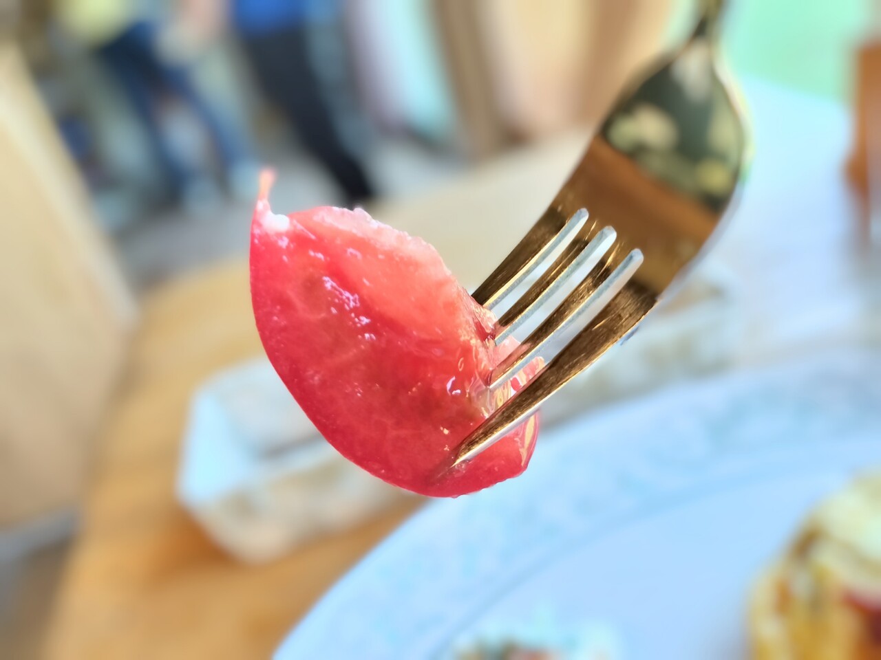 先ずはレアチーズから頂くと 苺のソースとラズベリーの甘酸っぱさと レアチーズの甘さが良い感じに引き合ってバリバリ美味い!