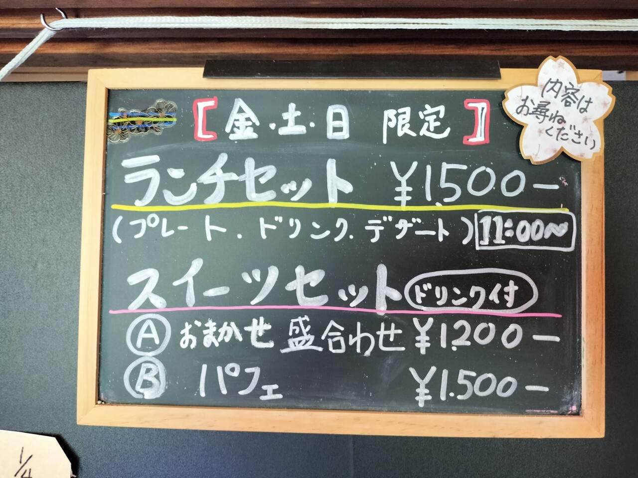 ランチ、スイーツのセットがあり