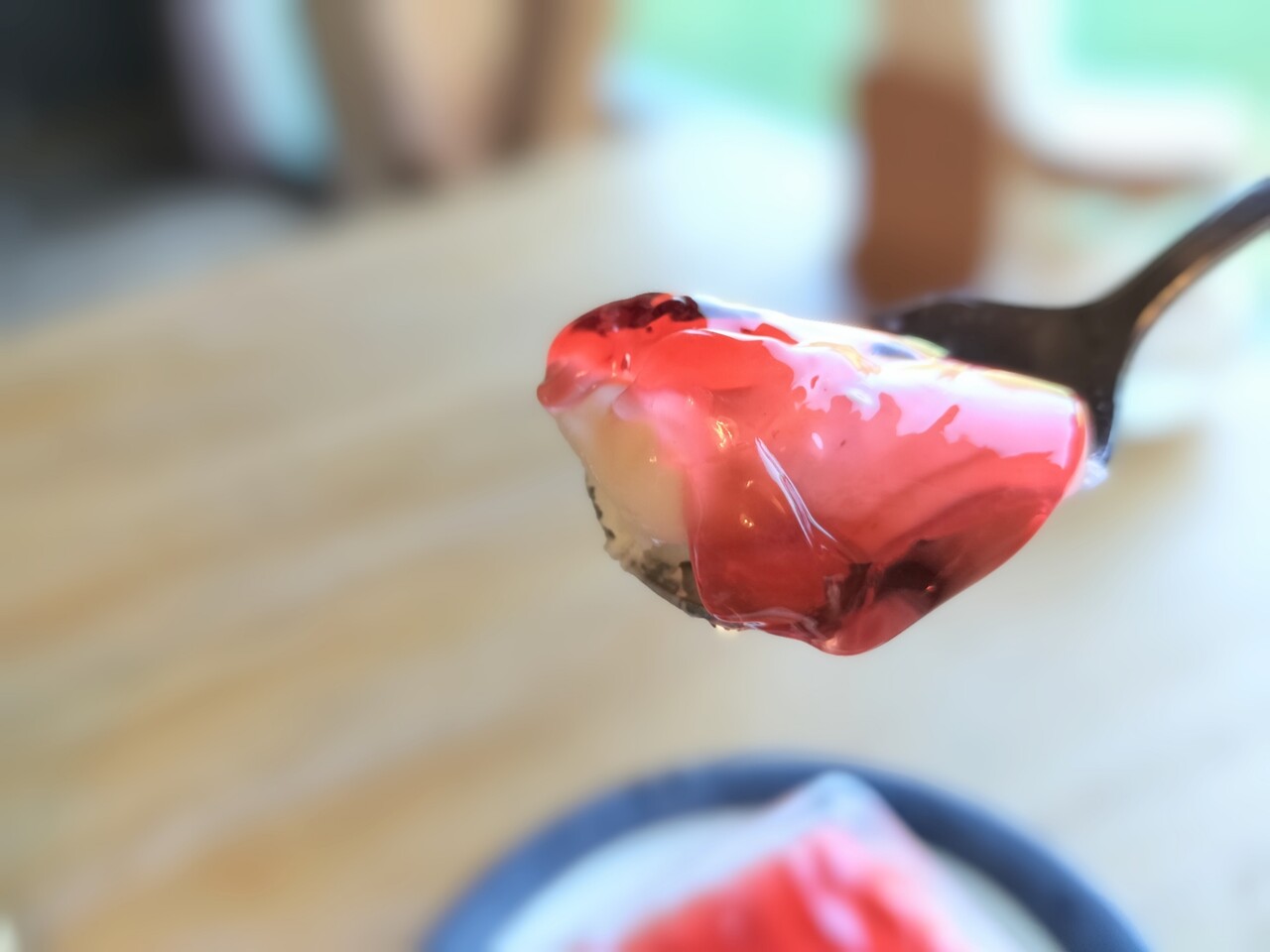 こちらはレアチーズプリンのベリーソースかな?