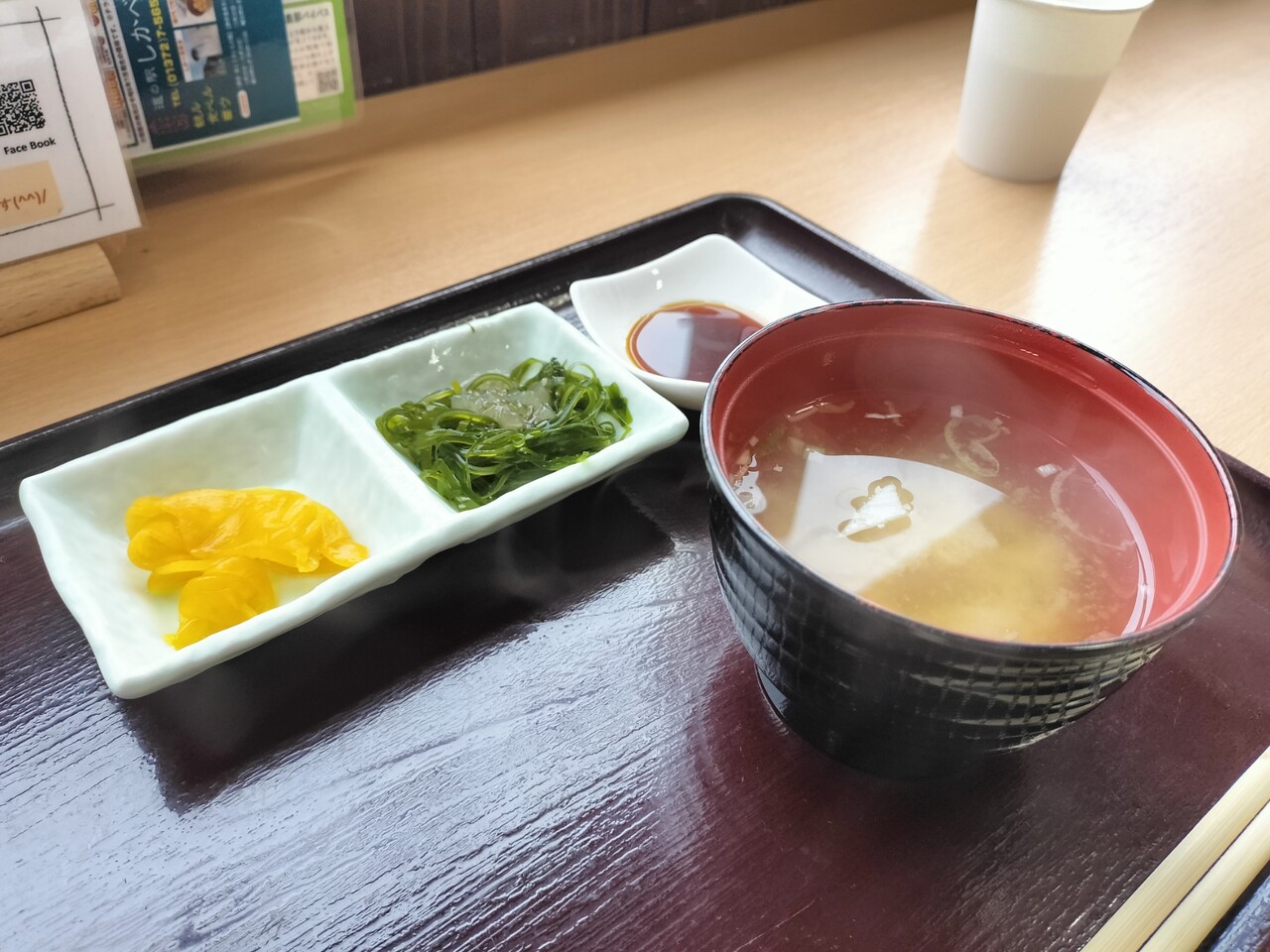 他にはソーメン昆布ら沢庵、味噌汁(ふのり、長ネギ)