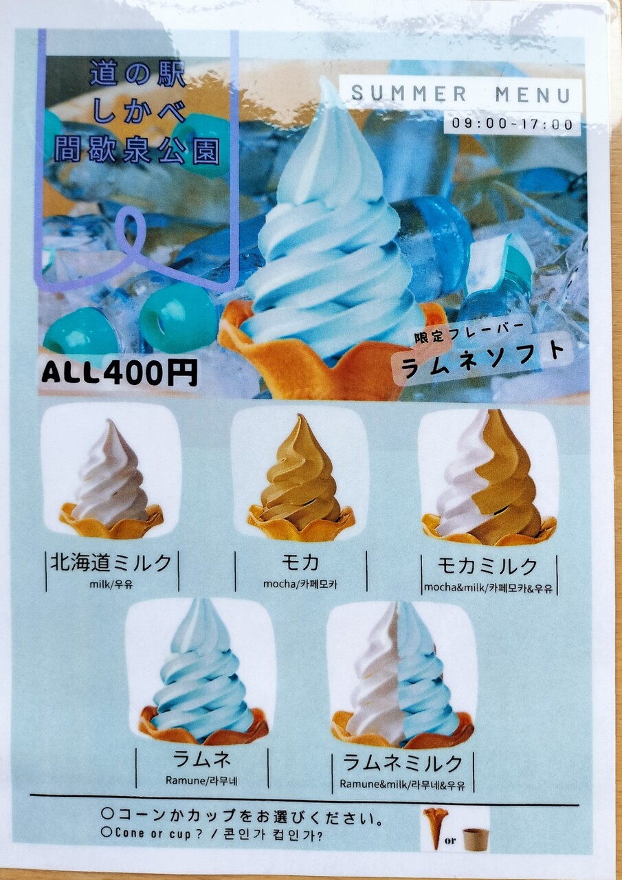 そしてテーブルの上に夏仕様に変更されたソフトクリームのメニュー表もありました…