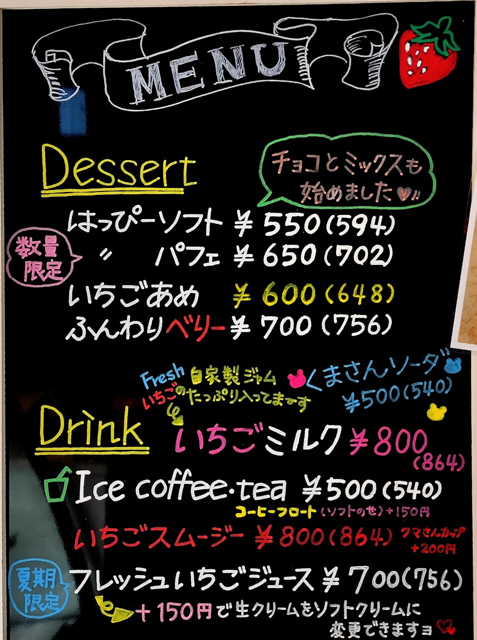 今回は はっぴーソフト(¥594)といちごミルク(¥864)この2点をオーダーしたいと思います