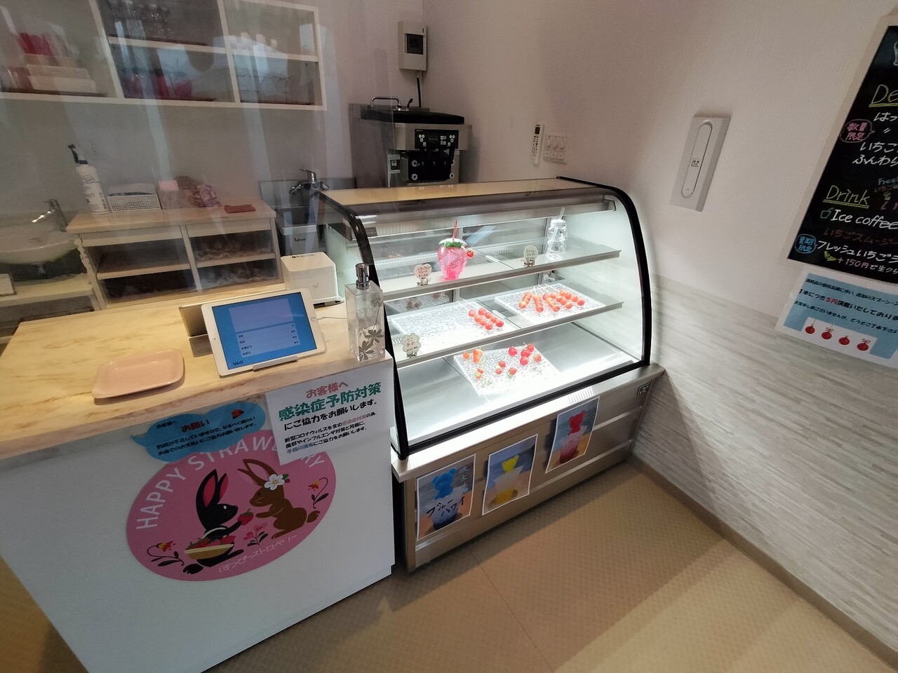 以前はケーキも色々販売されていたのですが 現在はソフトクリーム、パフェ、ドリンク等の販売となります