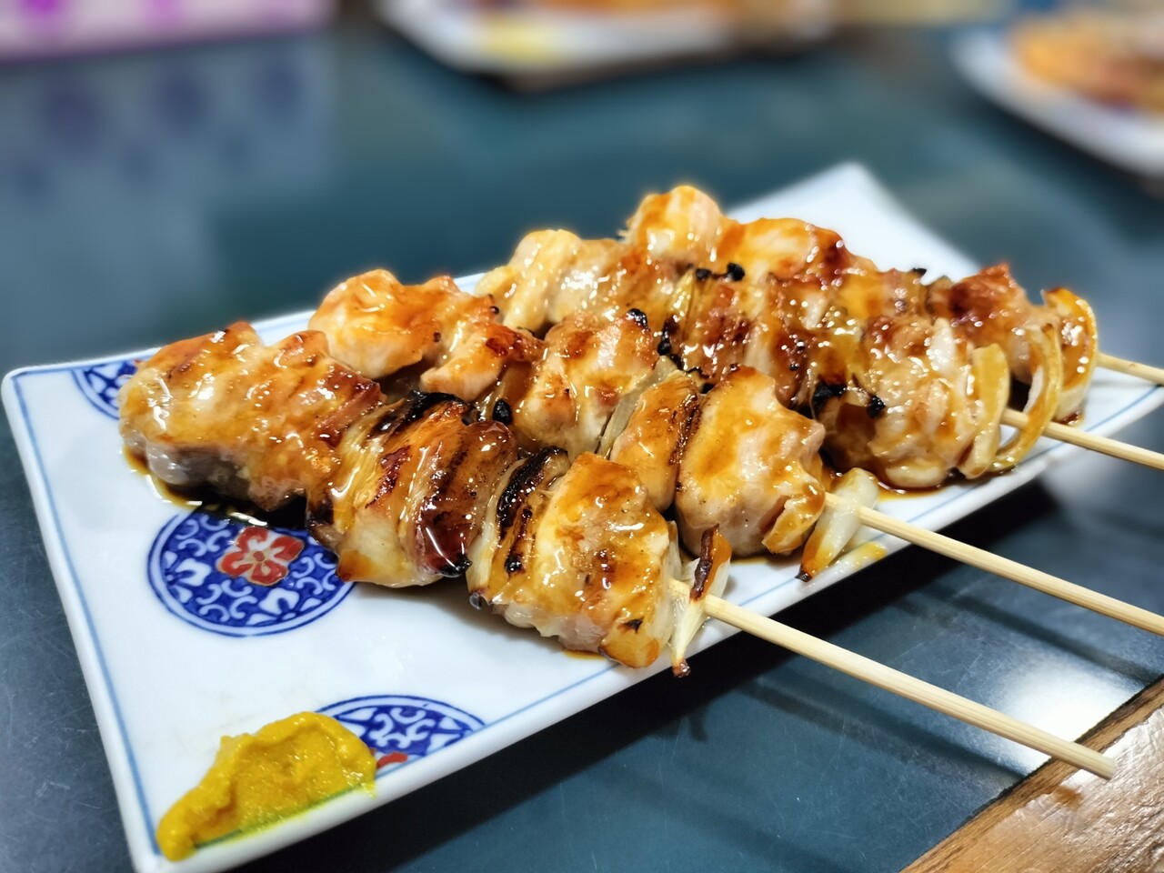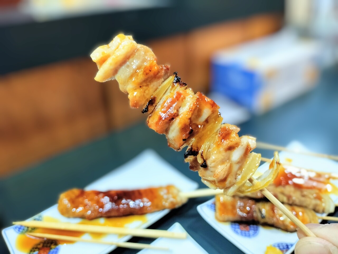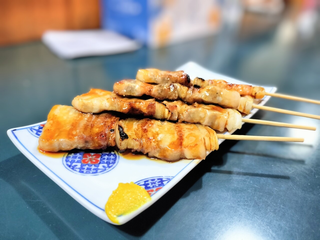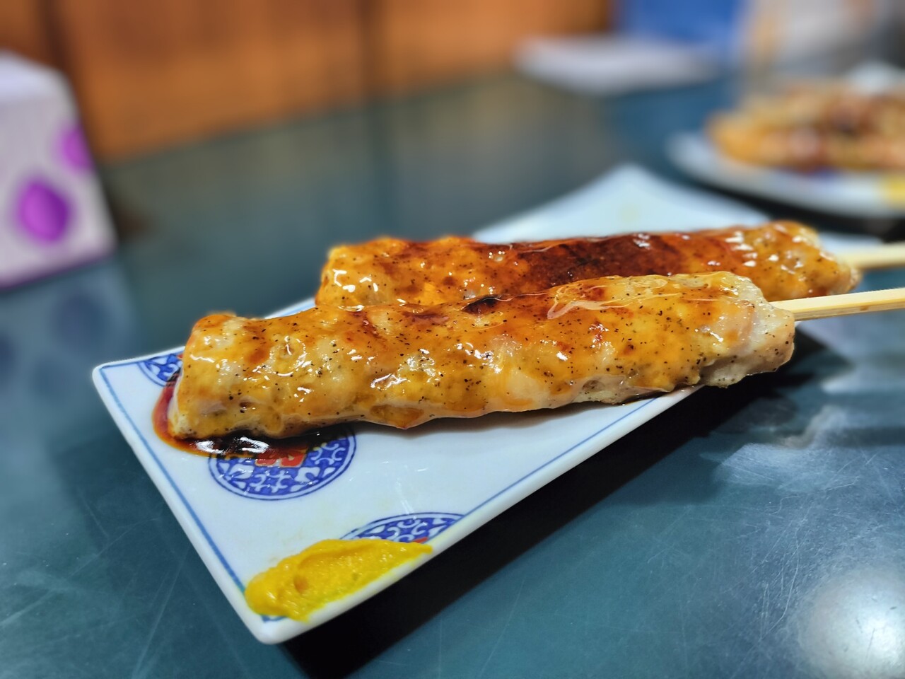 全て揃う前に1本だけ先に食べると 豚バラ肉が柔らかくて脂身も甘くて美味い!豚バラ肉の間には長ネギではなく玉ねぎがサンドされておりこれも甘くて美味いんだなぁ室蘭風?タレも甘めですが良い感じ