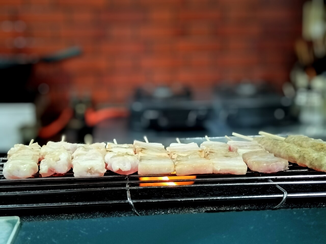 そして焼き台には焼き鳥がセットされ