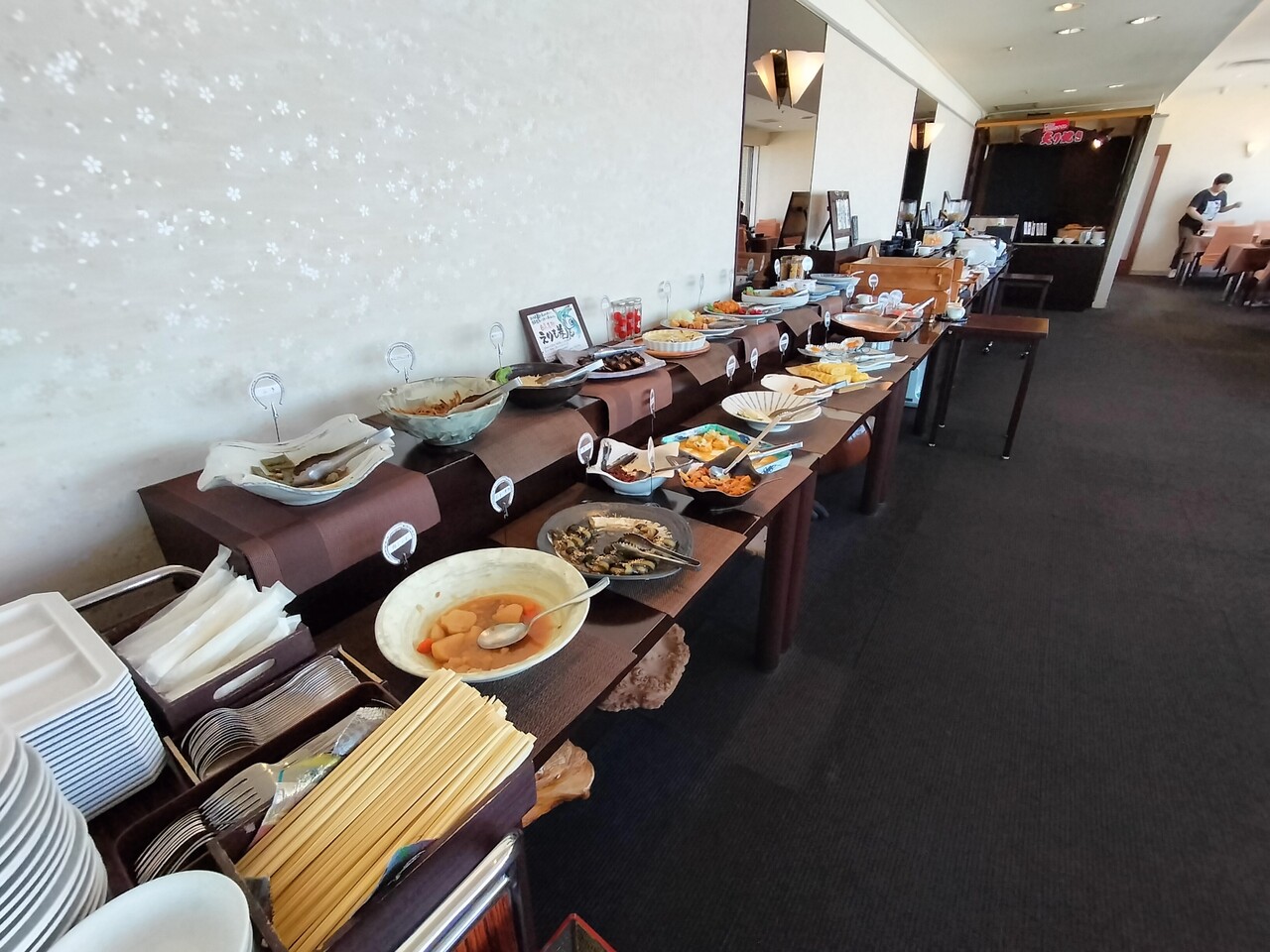 実は3時半頃でこの明るさでして… 函館方面とは日の出時間が全然違うなと思いましたそしてシャワー浴びたりマッタリして時間を潰し 6時50分に朝食会場のある9階 レストランSAKURAへ朝食と おにぎりの引換券を持って向かいます