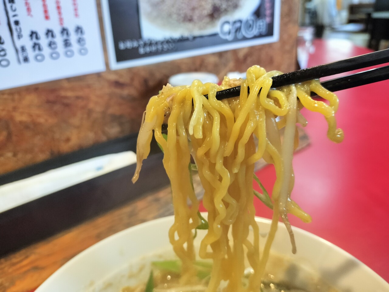 麺も啜ると中太縮れ麺にスープが絡んで美味い!