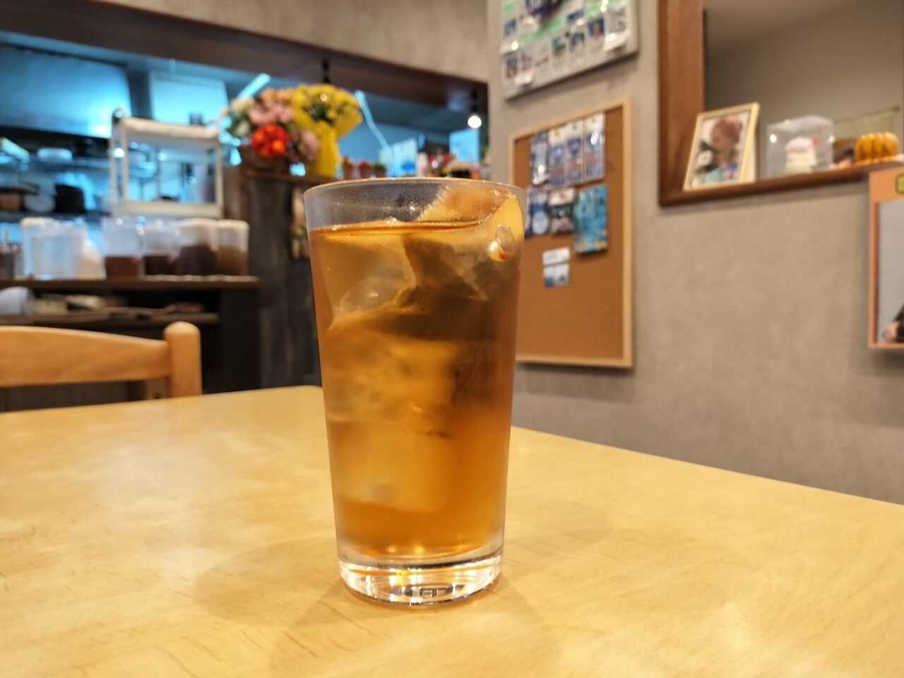 空いていたのでテーブル席に腰を下ろし麦茶を頂き
