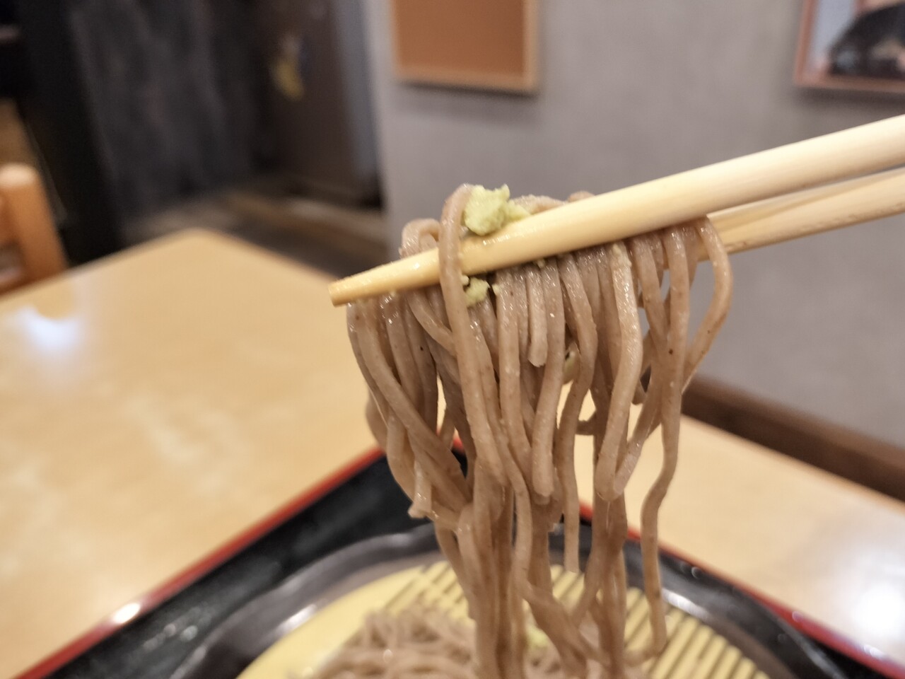 わさびを添えてズズっと啜ると わさびの甘さと辛味が蕎麦の香りと甘みを引き立ててくれこれも美味い!