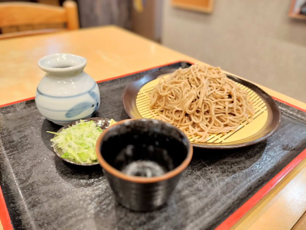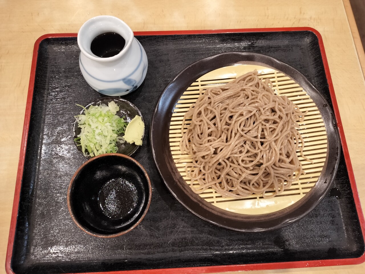 薬味の長ネギ、わさび、蕎麦つゆの内容となります