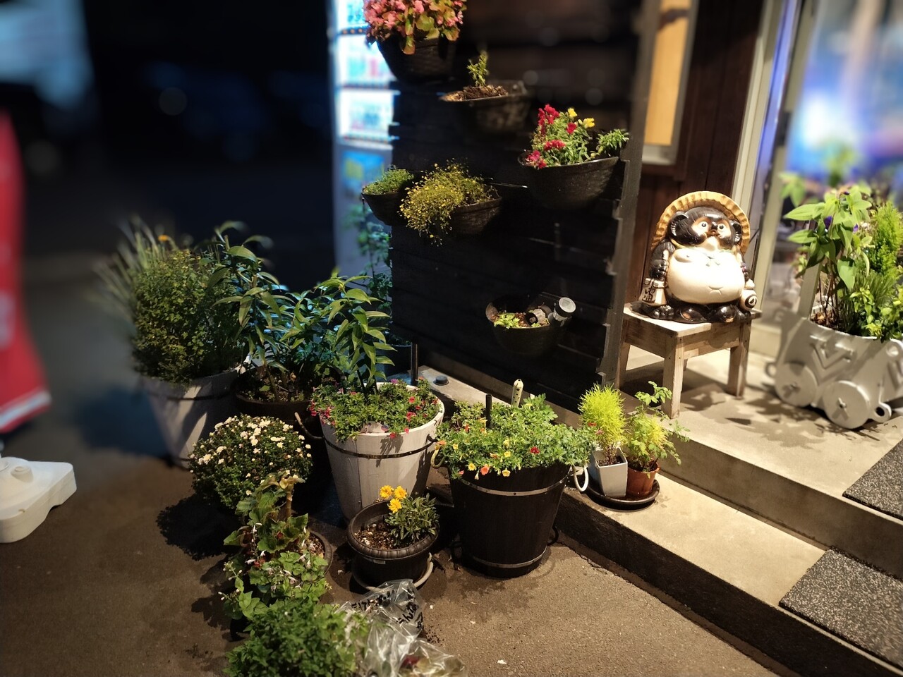 店舗前には数々のお花で彩られておりました