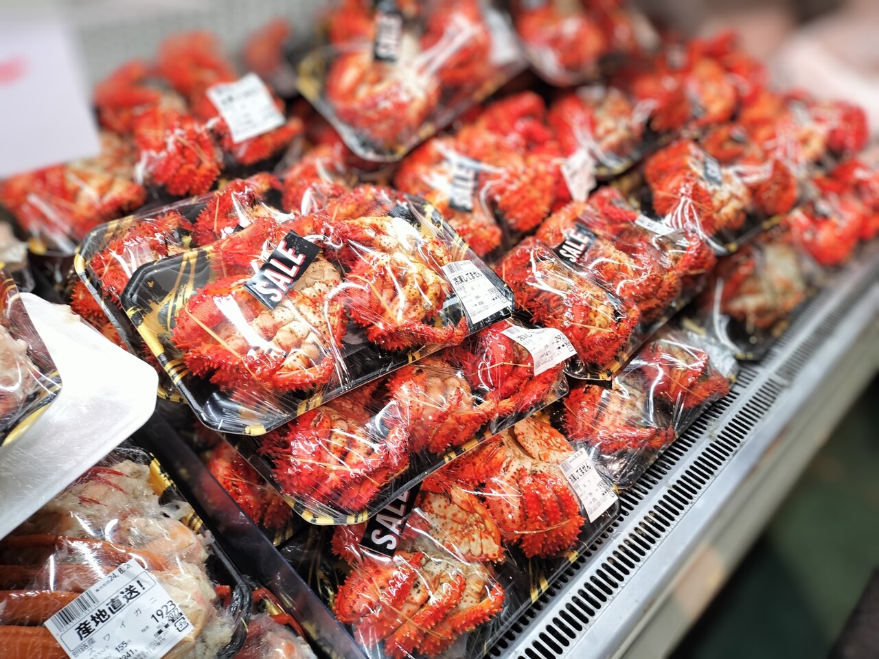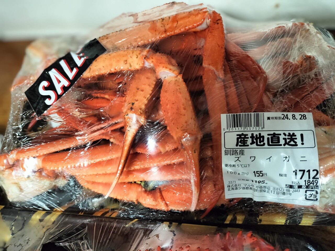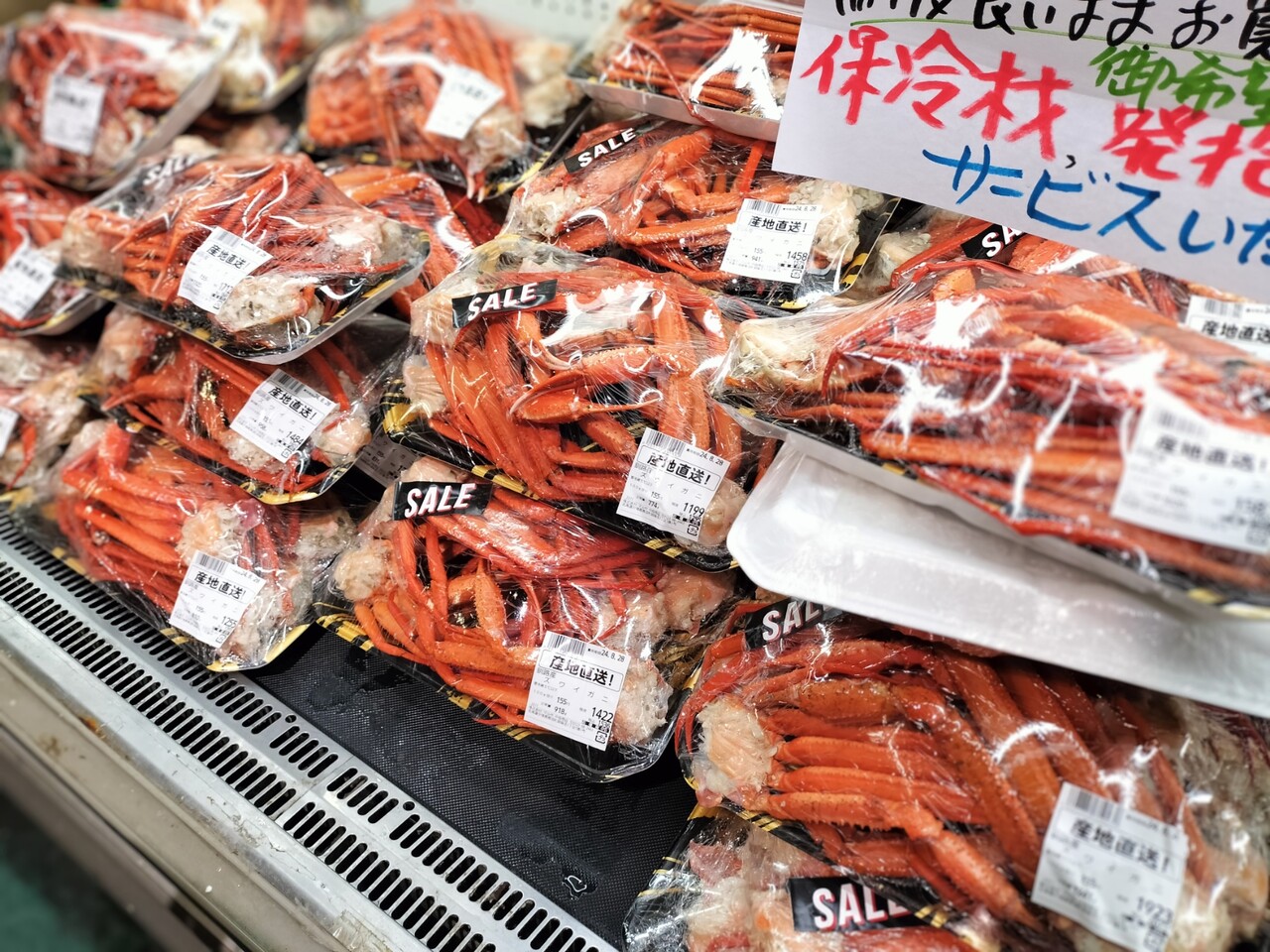 ズワイガニだってある!こちらは方のみ詰められたものになりますので甲羅はありませんが安い上にこの量はヤバいね…勿論カゴにin