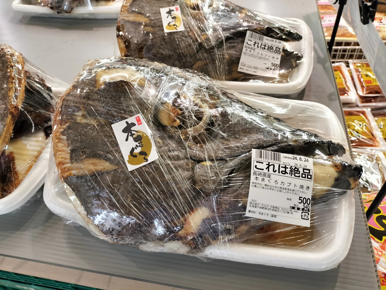 開店し鮮魚コーナーへ向かうと その途中にマグロのカブト焼きを発見!しかも¥500だと… 安すぎるだろ…