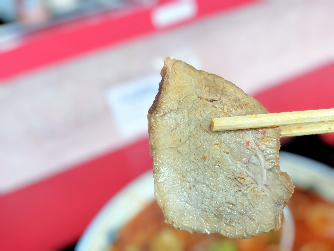 チャーシュー(2枚入)はもも肉で昔ながらの歯応えのあるもので 偶にはこういうチャーシューも悪くない
