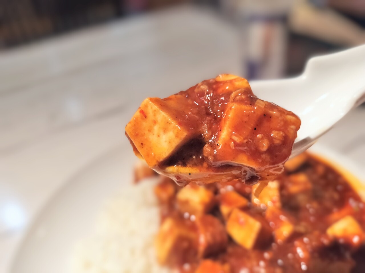 大きなお皿にご飯とマーボー豆腐