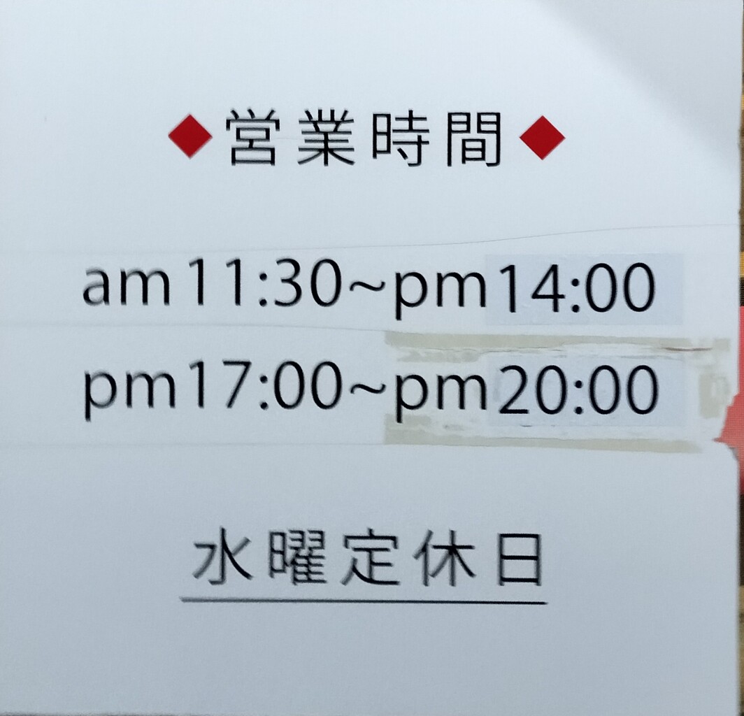 営業時間 11時30分〜14時、17時〜20時3