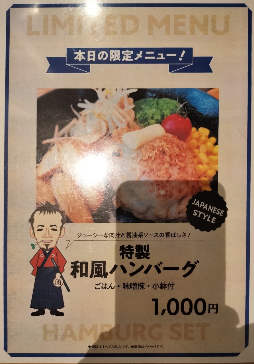 メニューを見ていると本日の限定メニュー 特製和風ハンバーグ(¥1,000)が気になったのでこちらをオーダー致します
