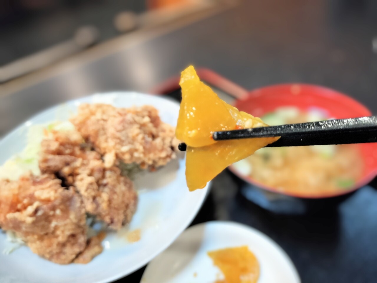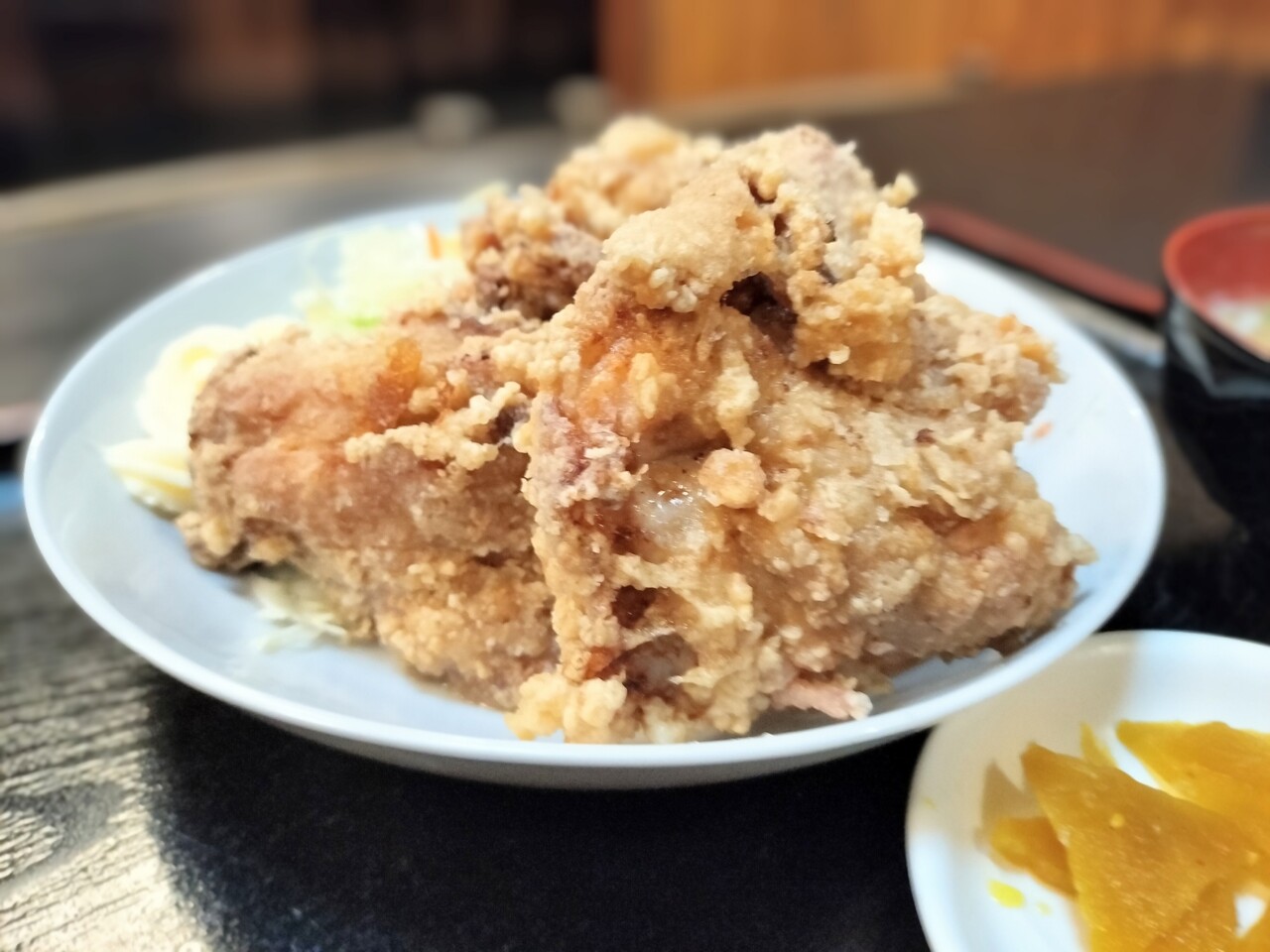 拳大(こぶしだい)の唐揚げを残り3個一気に平らげ完食となりました