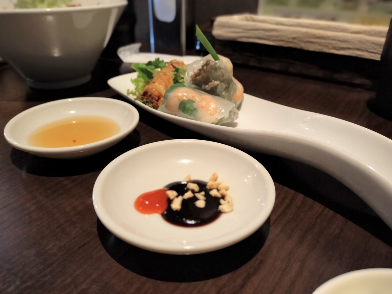 なので今回は鶏肉のフォー(¥990)とあと一品料理も食べてみたいなと生春巻き(¥330)、アミアミ揚げ春巻き(¥330)をオーダー致します