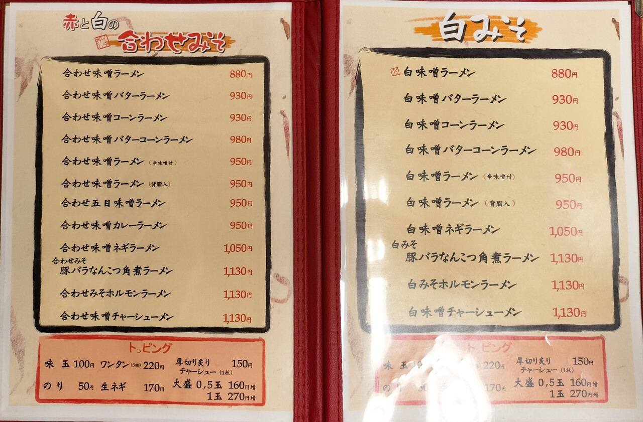 色々メニューはありましたが 今回は 合わせ味噌ラーメン(¥880)➕厚切り炙りチャーシュー(¥150)をトッピングでオーダー致します