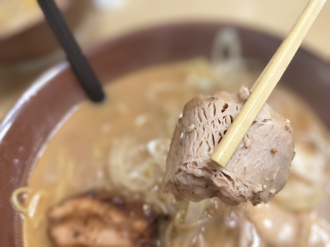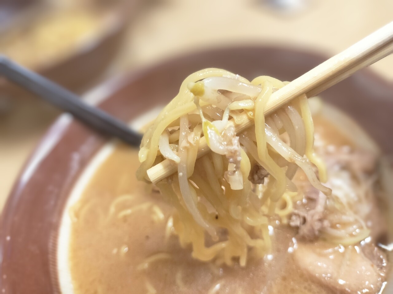 味噌の良い香りが食欲をそそります(味玉、チャーシュー、厚切り炙りチャーシュー、長ネギ、なると、ひき肉、もやし等)