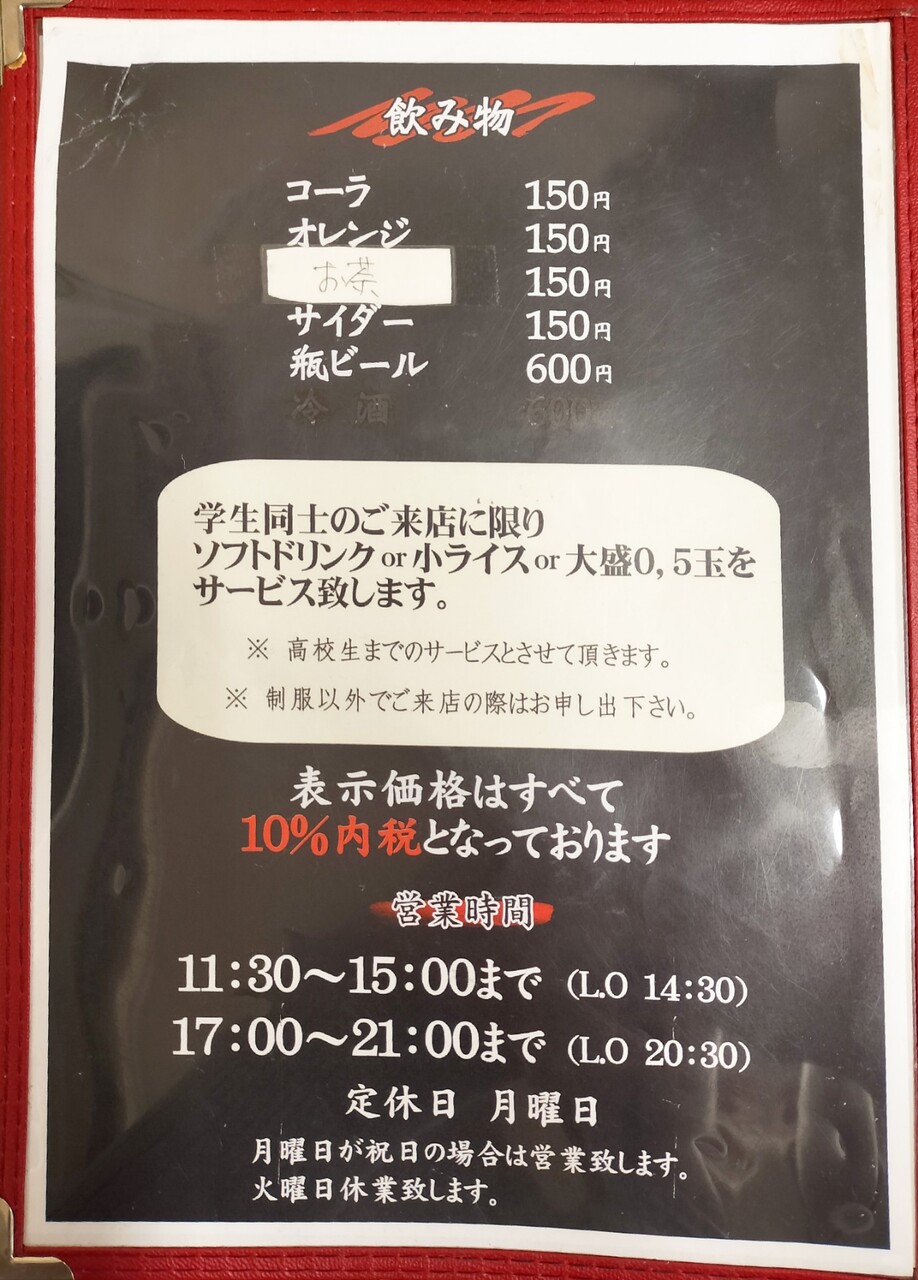 学生さんは少しだけお得な様です