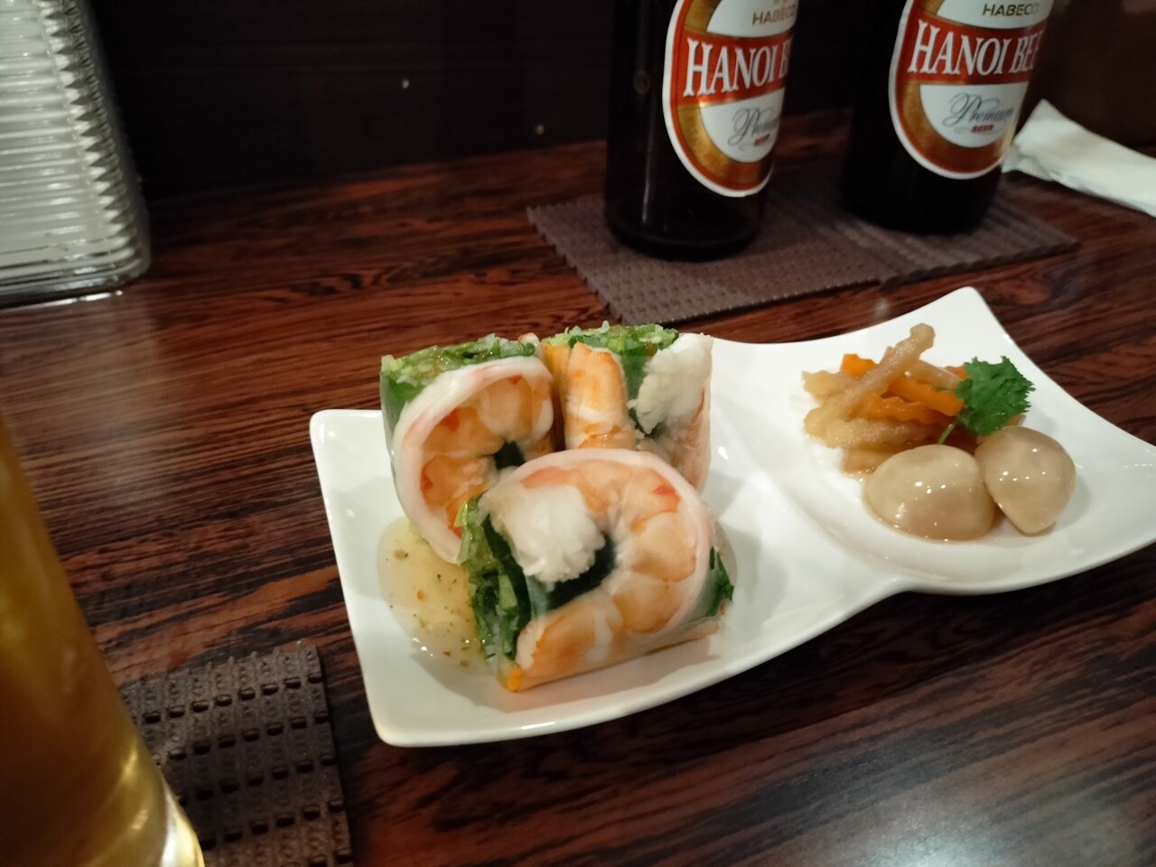 飲み物はハノイビールをオーダーし foodは4点オーダー致しました(お会計は料理が提供された時に支払います)
