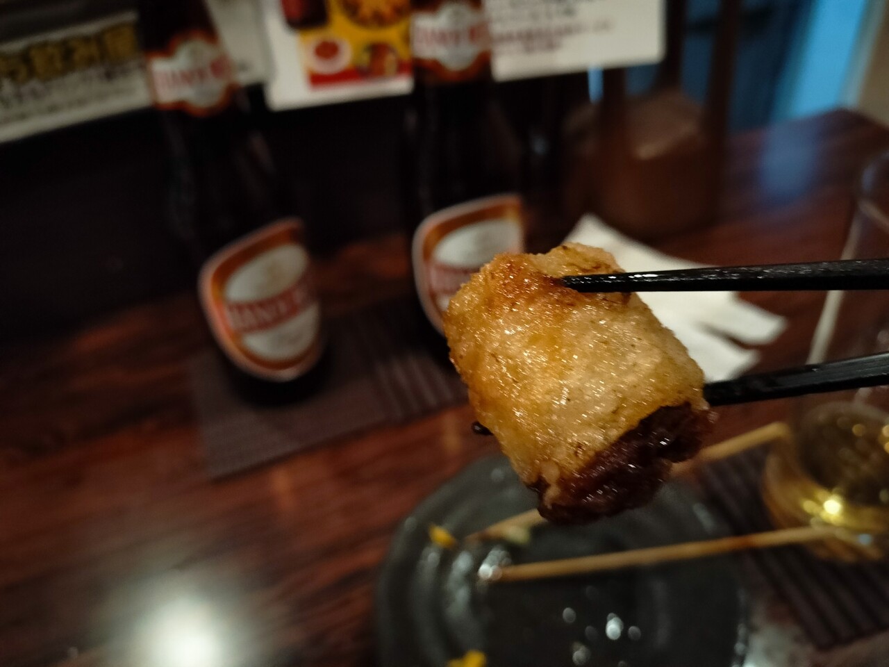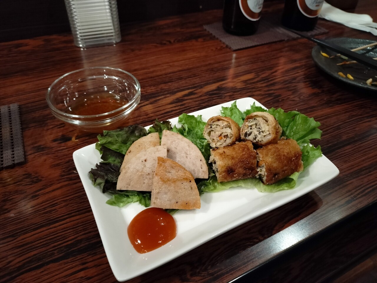 揚げ春巻きはタレにつけて食べますが美味いな!