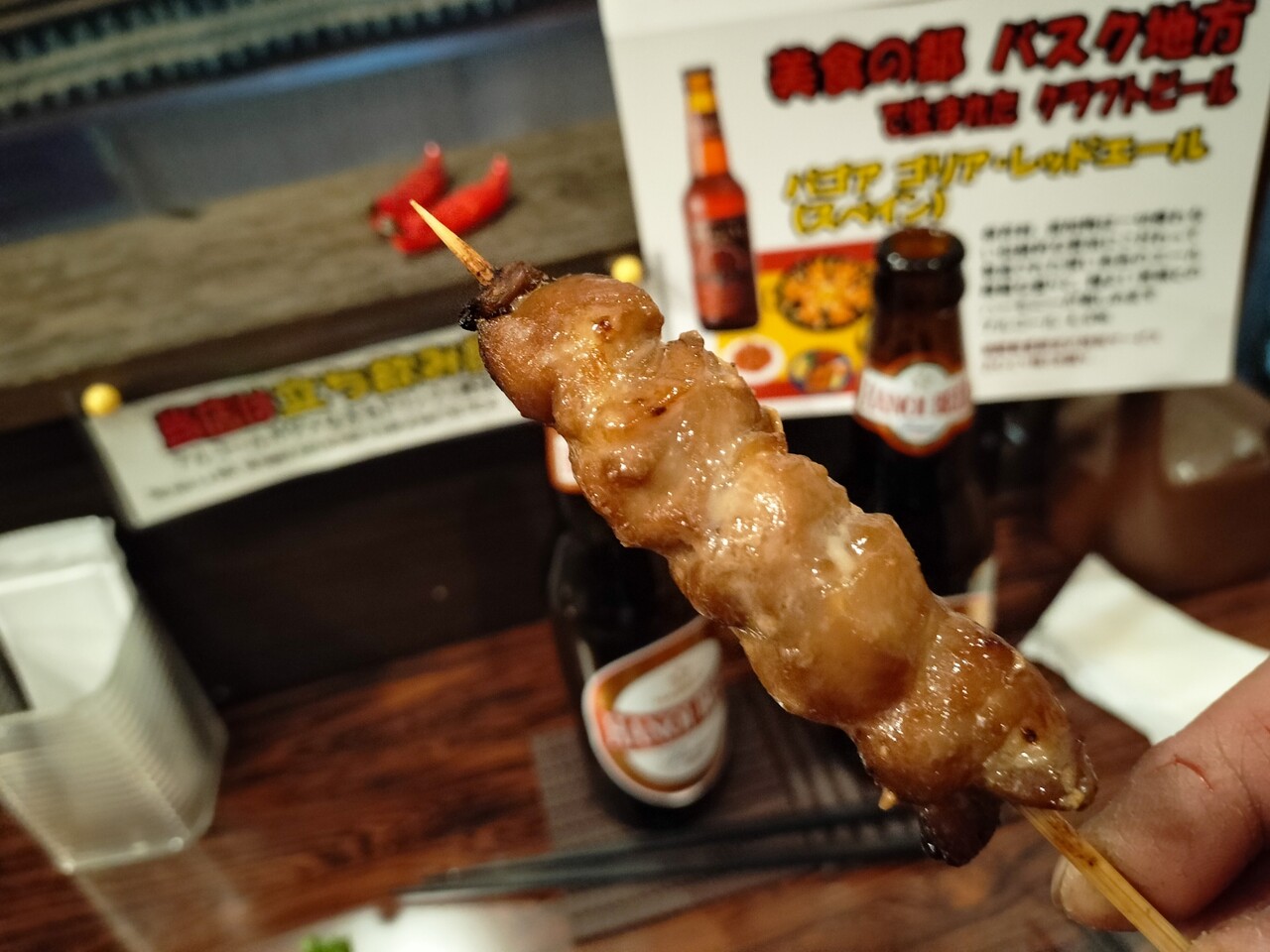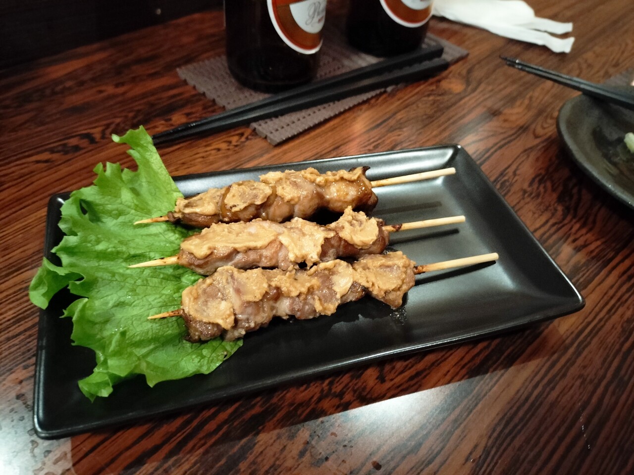ってビールを飲みながら食べていると サテアヤム…インドネシア風焼きとりだそうで