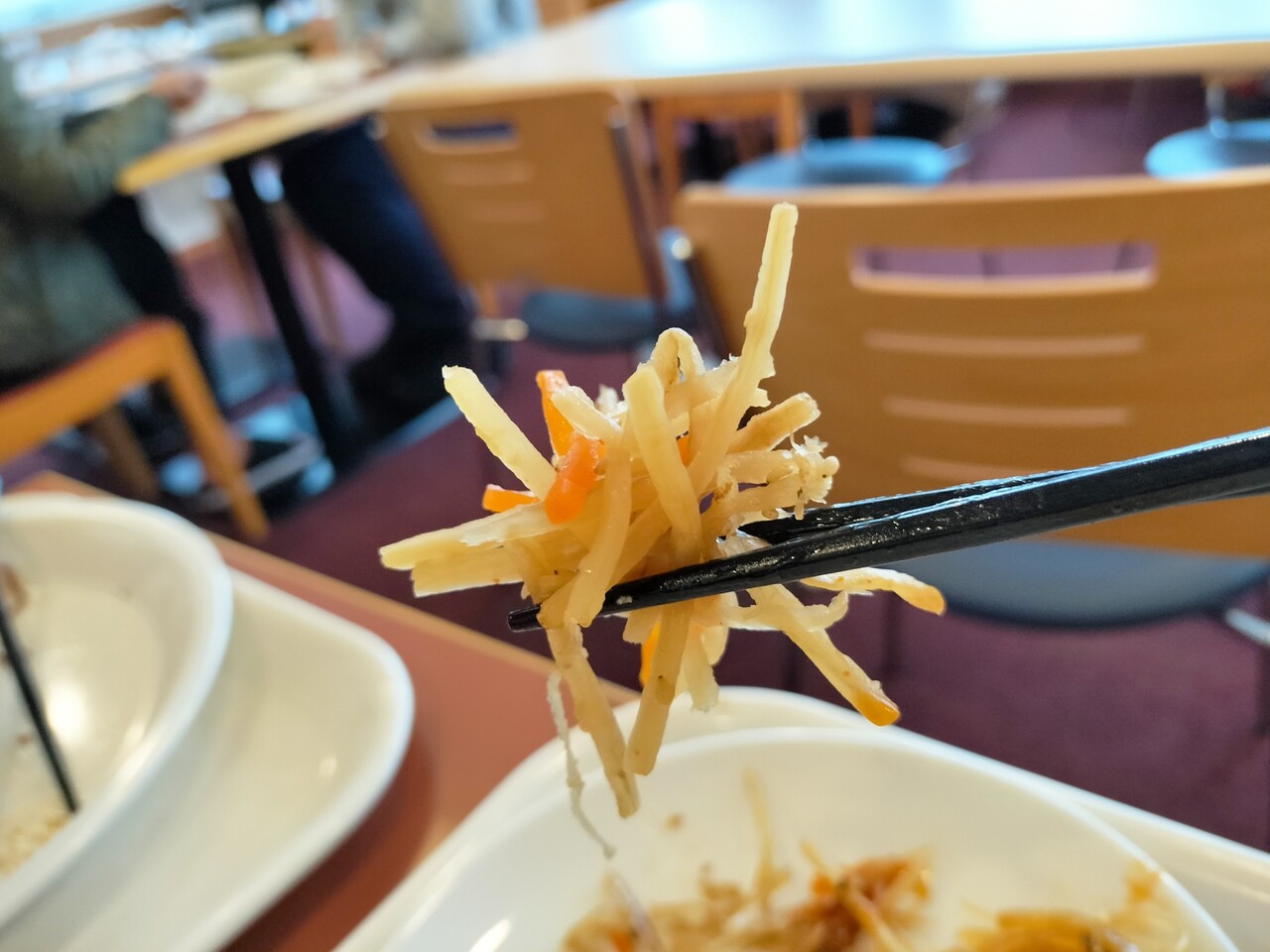 きんぴらごぼうは甘辛でピリっと辛い感じで ご飯が進みます(更にご飯をお代わりしている)