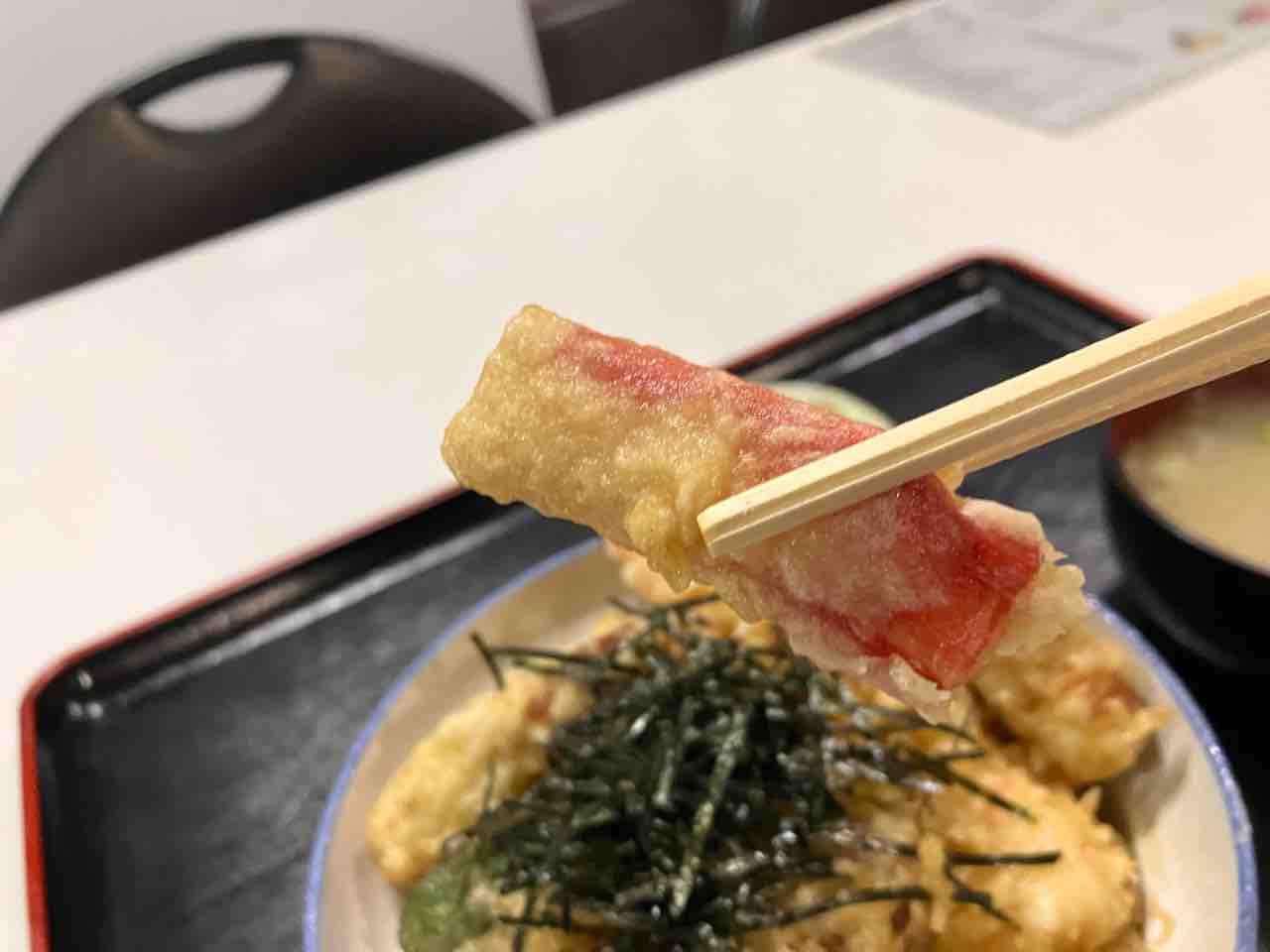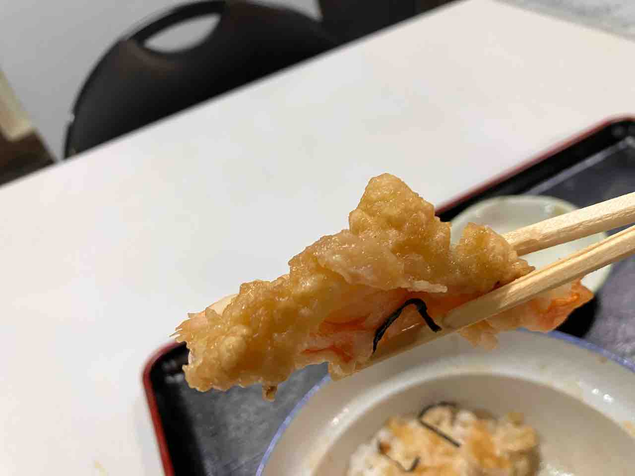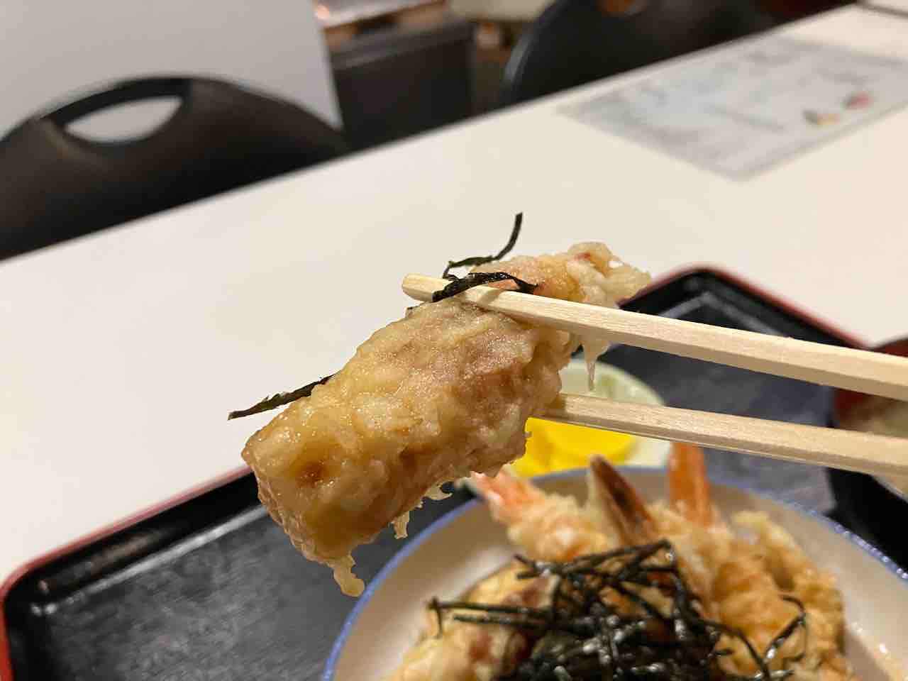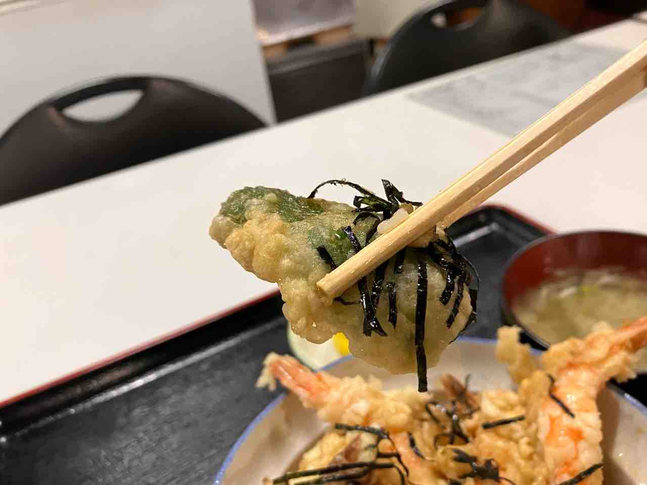 エビの天ぷらはエビがプリプリで甘タレとよく合い美味い!