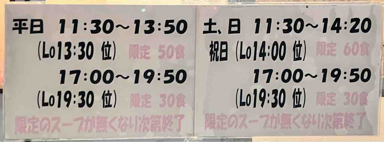 営業時間 平日 11時30分〜13時50分、土日祝 11時30分〜14時20分、