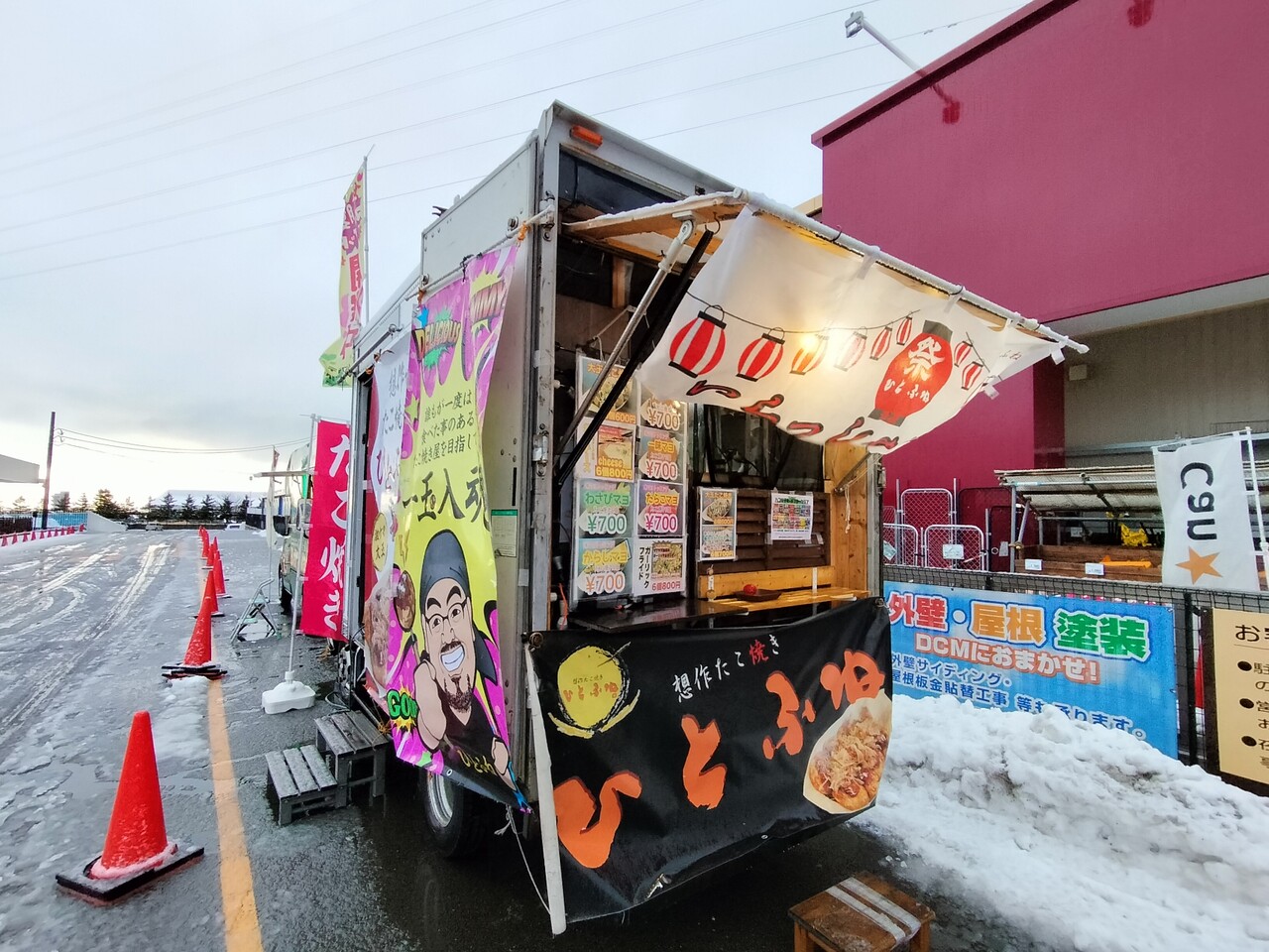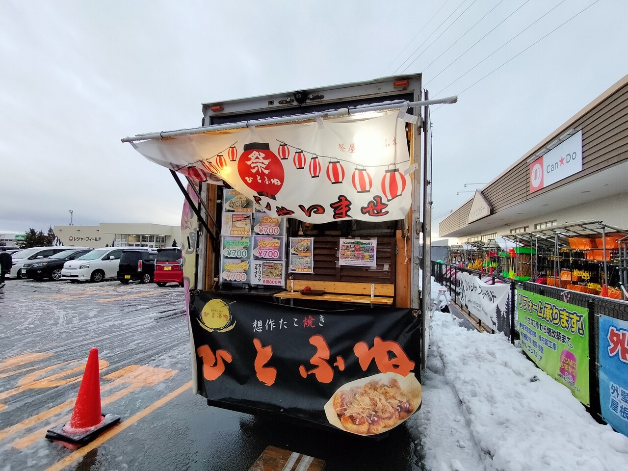 とある週末に 知り合いのXのpostで 函館市石川にある DCM石川店に 創作たこ焼き ひとふねさんが出店されてるってことを知り ちょいと伺って参りました