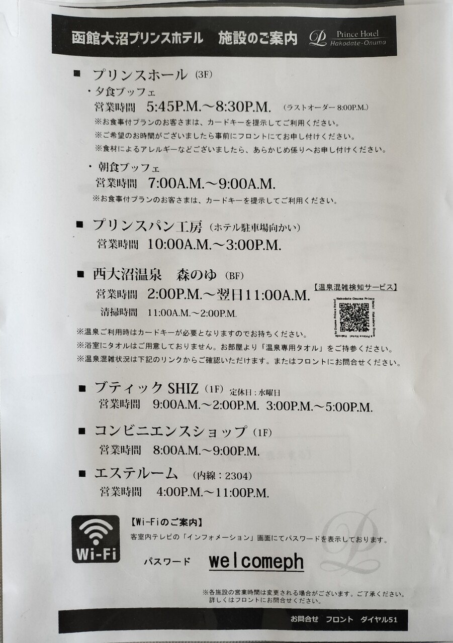 函館大沼プリンスホテルには温泉(西大沼温泉 森のゆ)があるので早速浸かりにいきたいと思います(タオルは部屋から持っていく仕様)