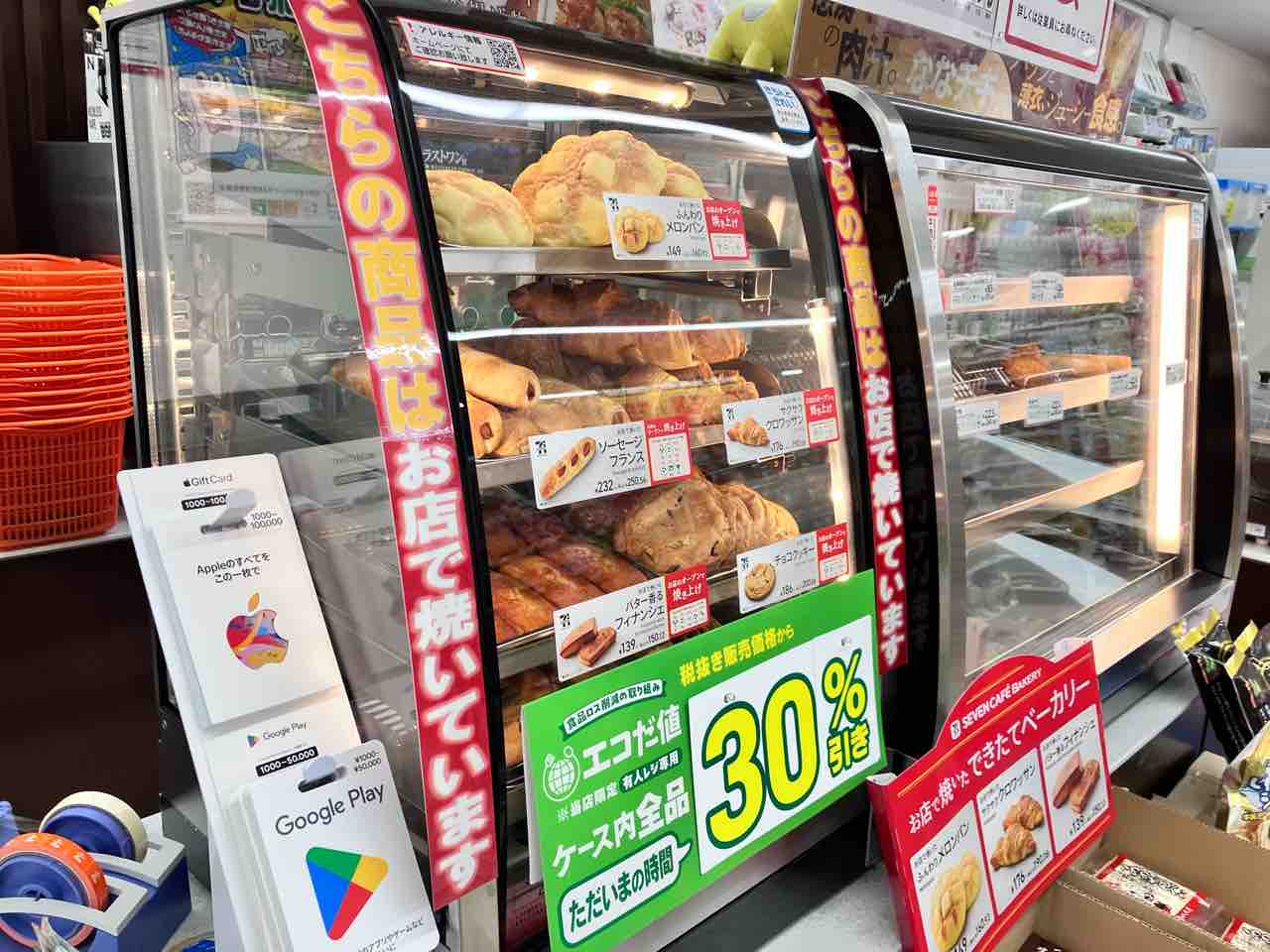 入店すると セブンカフェベーカリーって事で 店内で焼いたパンもあり