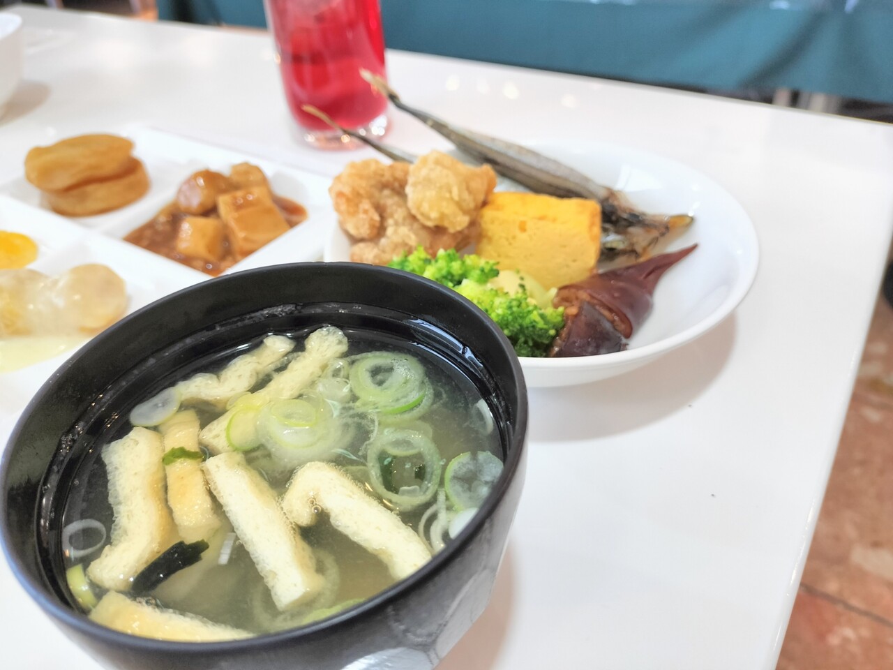 味噌汁に唐揚げ、イカ飯