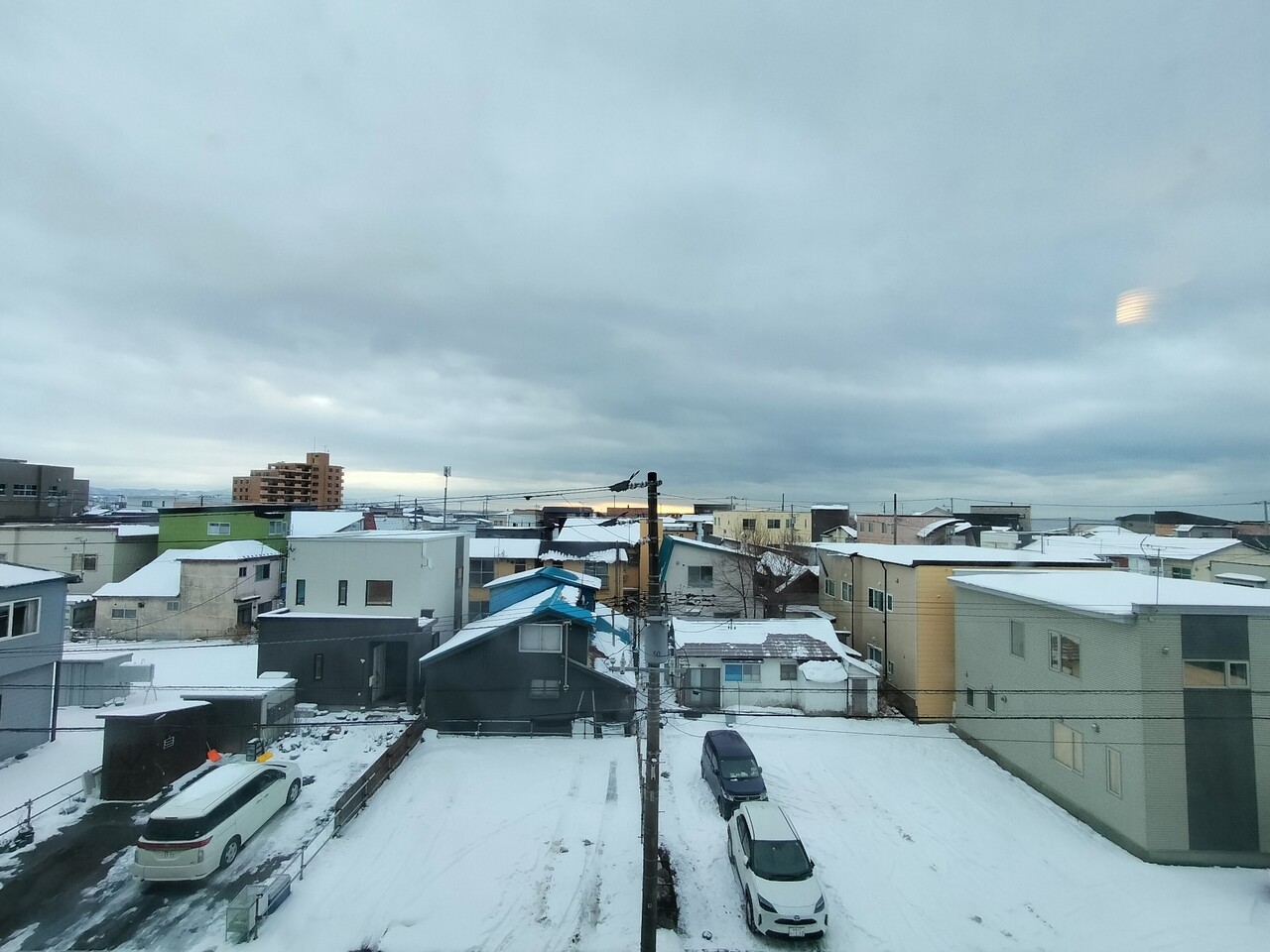 そして部屋に戻りシャワーを浴びて寝て起きると窓の奥の景色はこんな感じでした。立地的に景観は望めない
