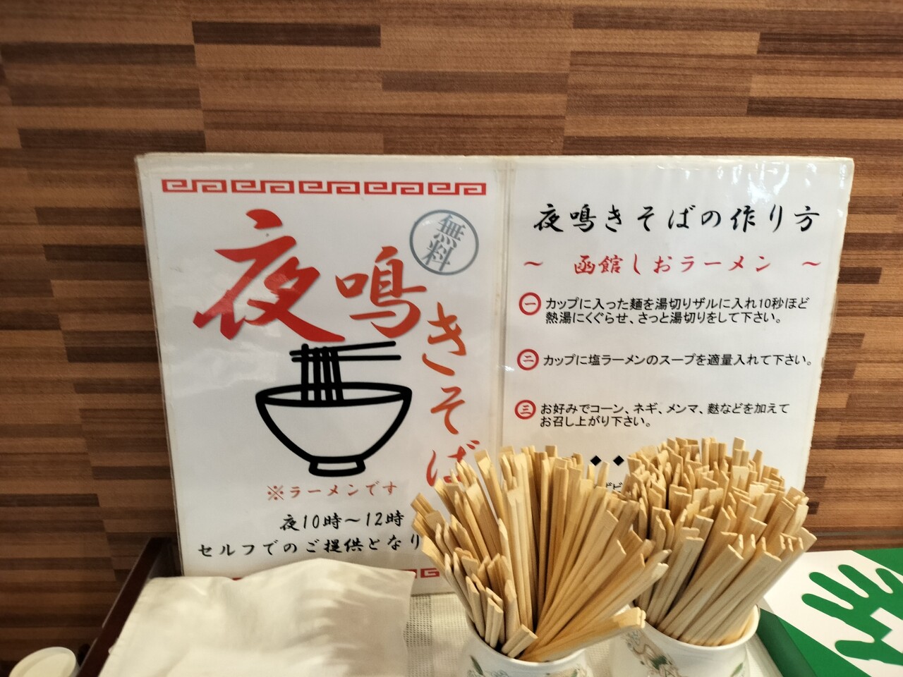 実はホテル函館ロイヤルシーサイドさんは22時〜23時までの間 食事会場で夜鳴きそばが無料で頂く事ができるんです