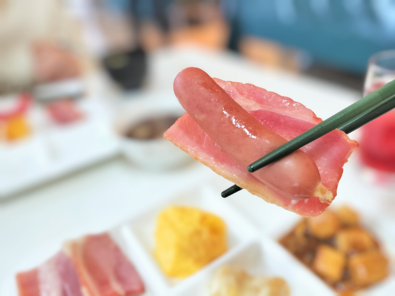 ベーコン&ソーセージ… ホテルの朝食には個人的には必須なやつ!美味い!
