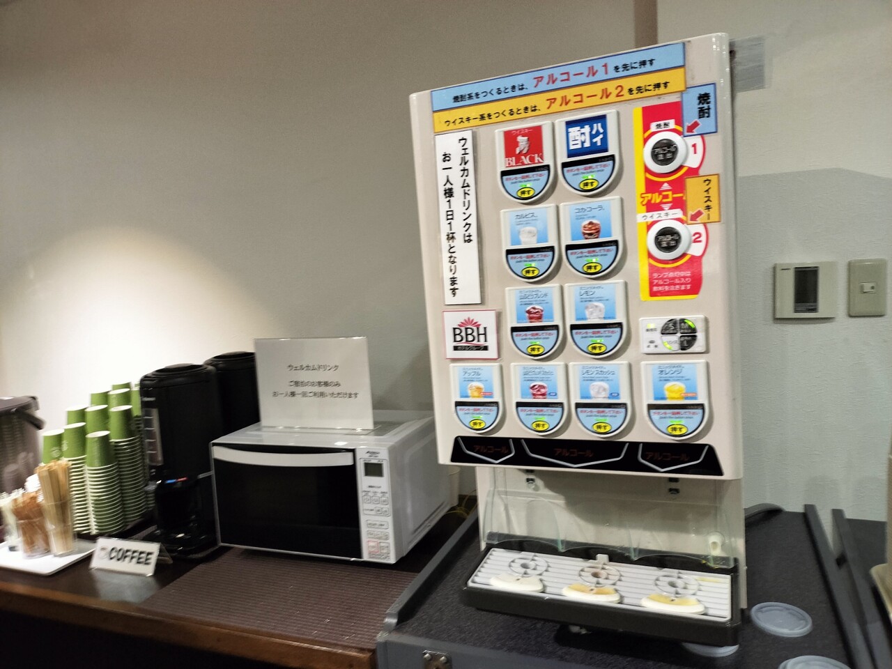ドリンクバーがありジュースを頂いて部屋に向かいます
