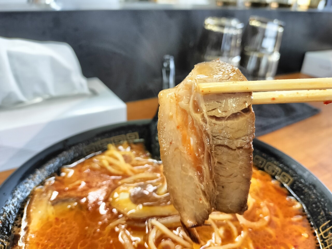 チャーシューは柔らかく脂身に甘みがあってスープとの相性もGOOD