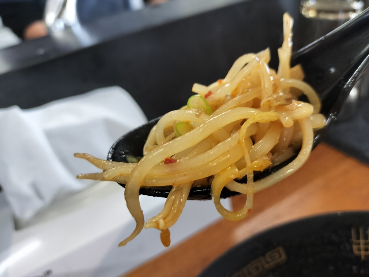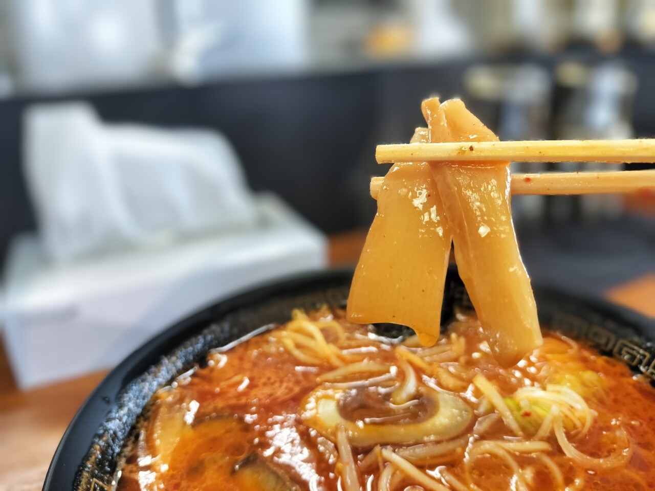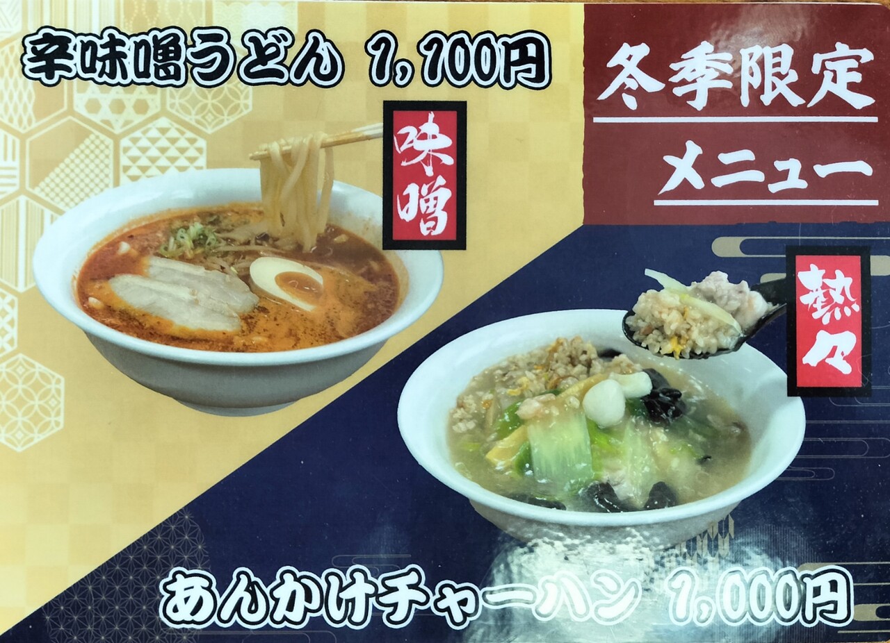 メニューは色々ありましたが 今回は辛味噌ラーメン(¥1,100)、デフォルトでは縮れ麺ですが 麺は選べるのでストレート麺でお願いしました