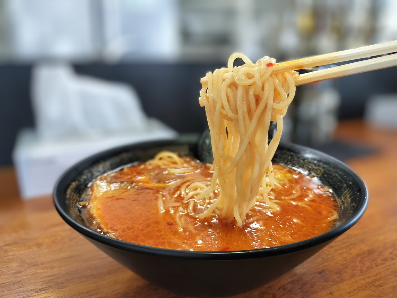 近藤さんと雑談しながら待っていると… 辛味噌ラーメンが運ばれてきました