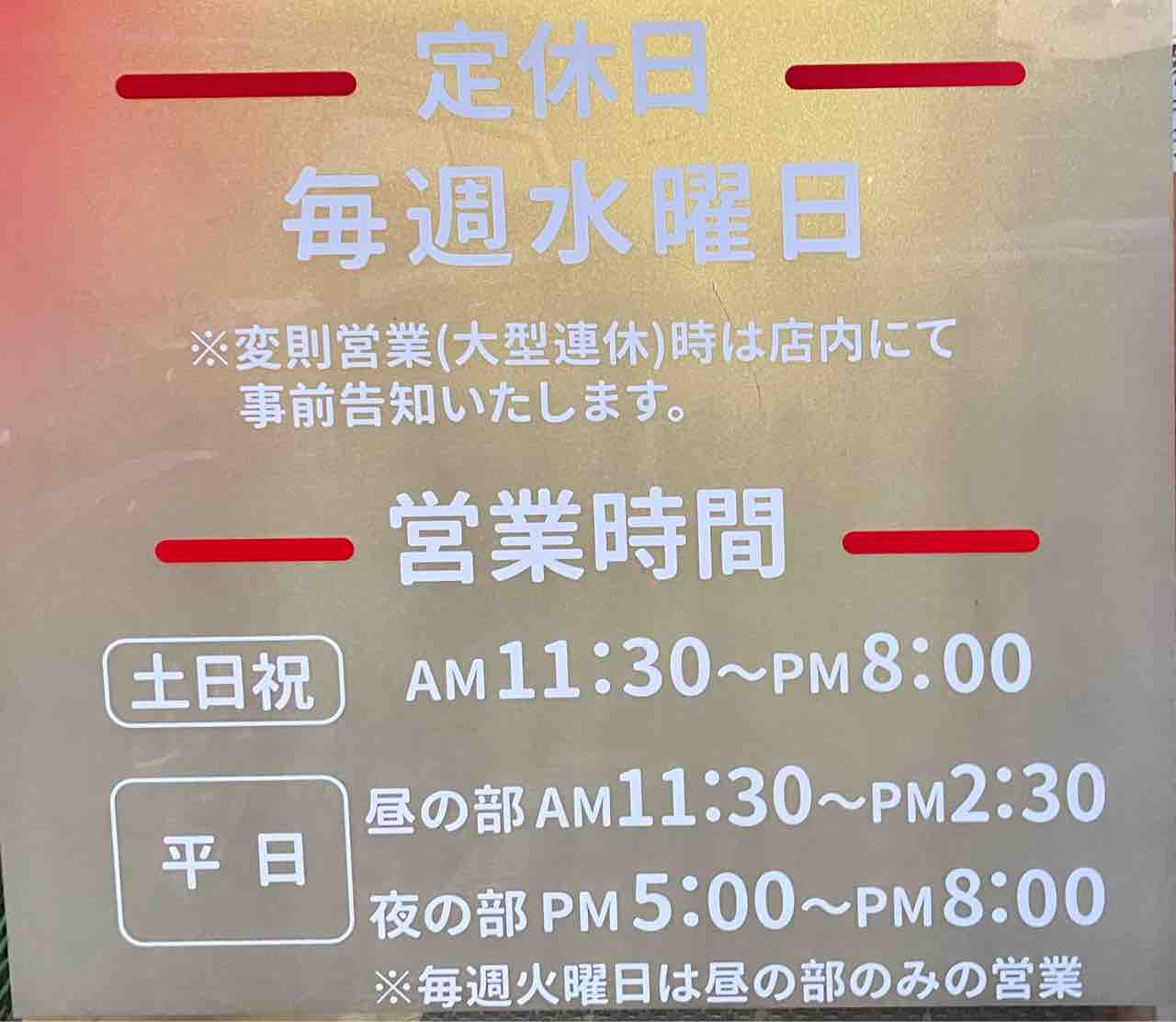 営業時間 11時30分〜14時30分、17時〜20時(土日祝は通し営業)