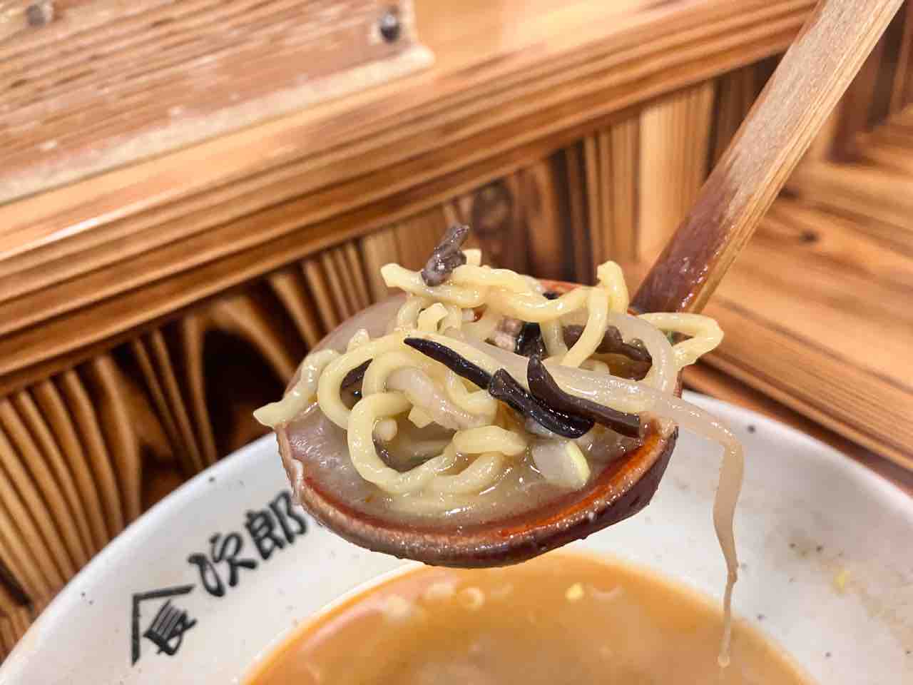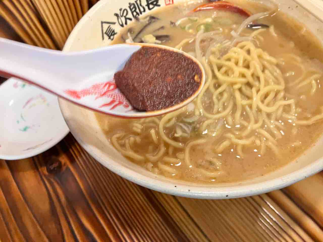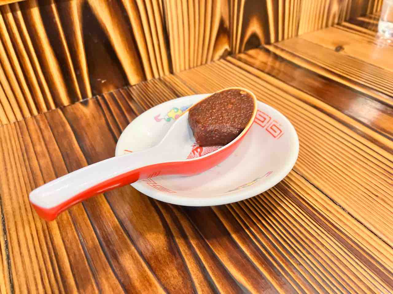 レンゲに取られた辛味噌がスッと運ばれてきます