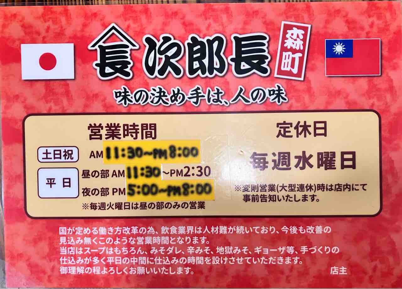 とある日の夕食に森町新川町にある ラーメン次郎長森町本店さんに伺って参りました