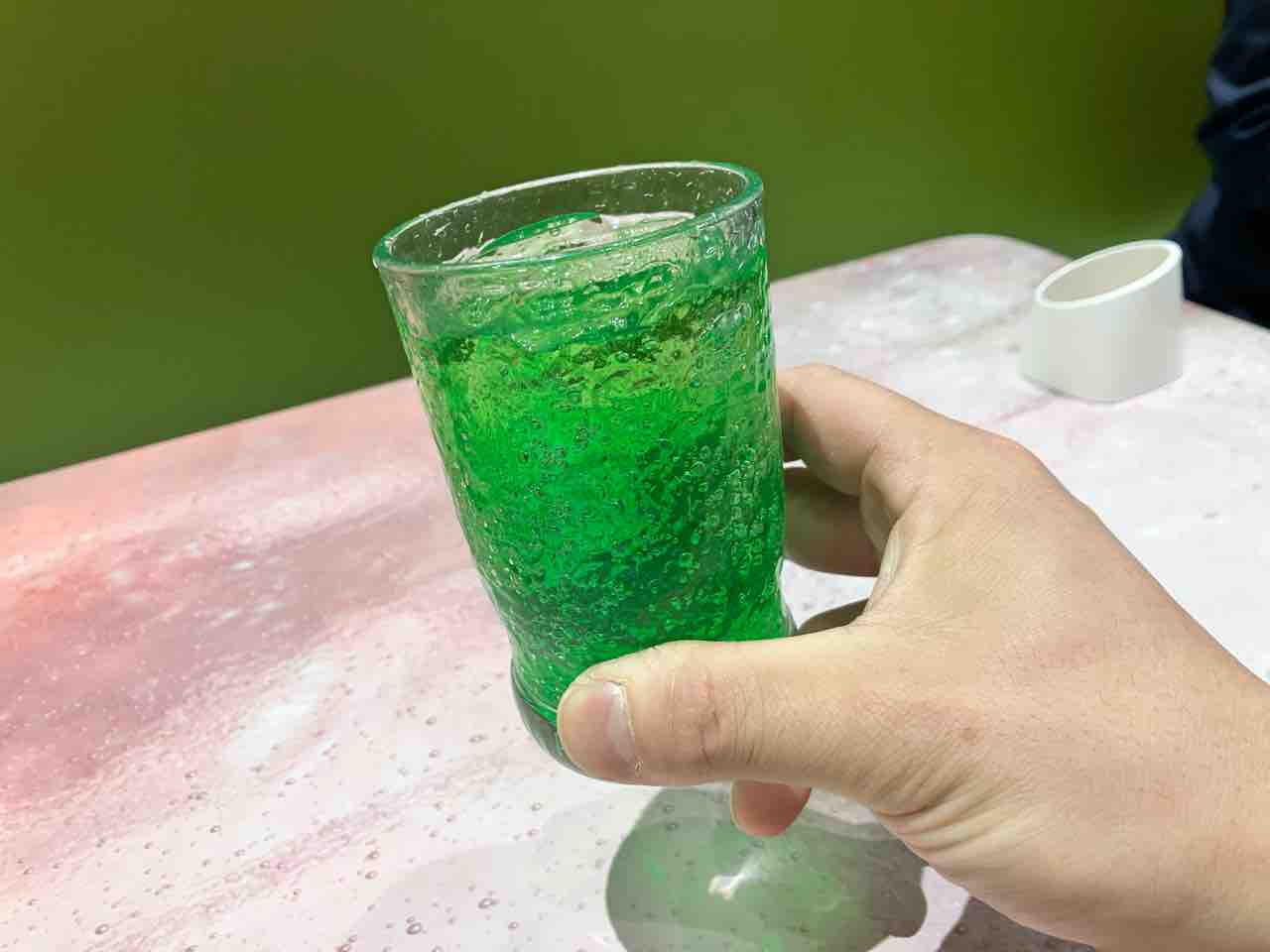 先ずはドリンクバーに向かいメロンソーダ注ぎ カンパーイ!周辺には高校生と家族連ればかりですなかなか厳しいシチュエーション